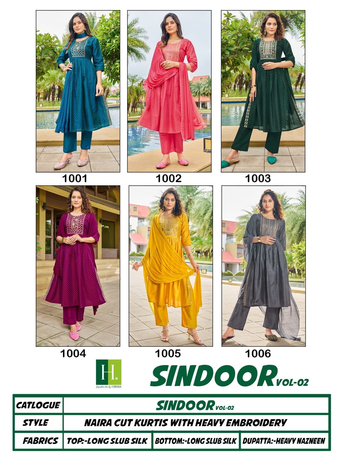 Hirwa Sindoor Vol 2 Series 1001-1006 Long Slub Silk Readymade Suit (849x06)