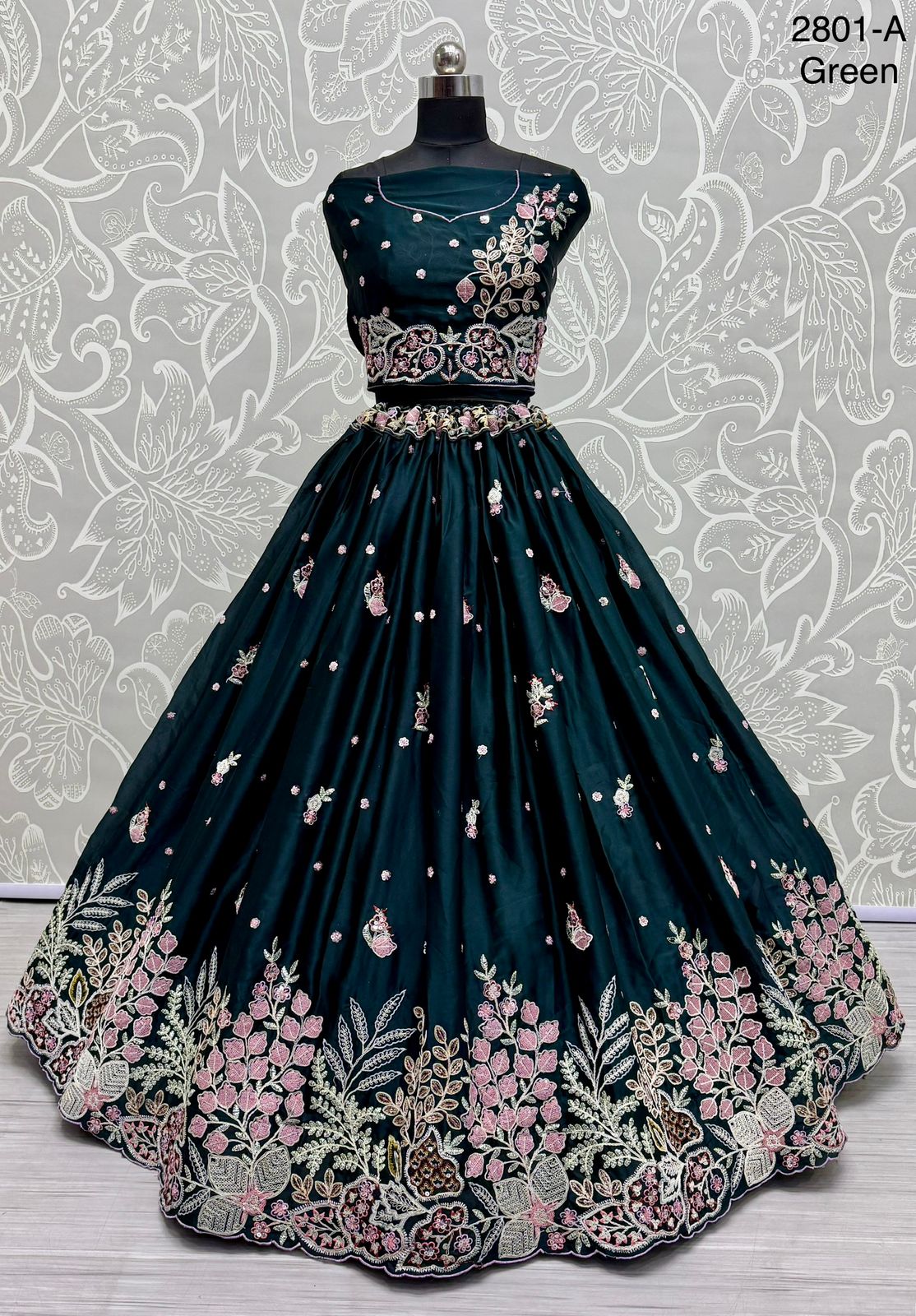 Green Colour Bridal Silk Lehenga with Khatali Handwork on Pastel Color Pure base Fabric Crafted Designer Partywear Lehenga Choli