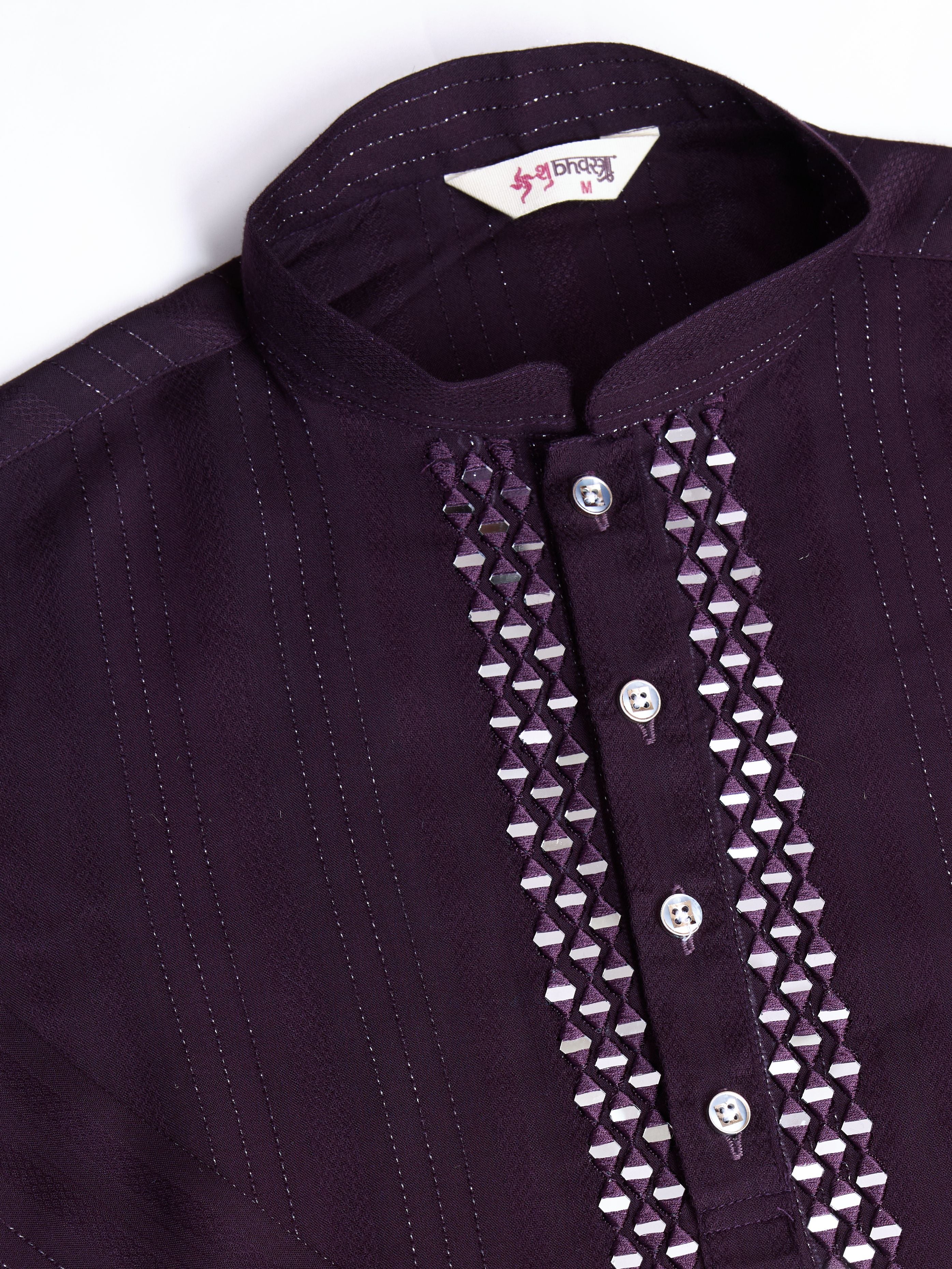Purple Colour Viscose Silk With Heavy Mirror Work Kurta Payjama