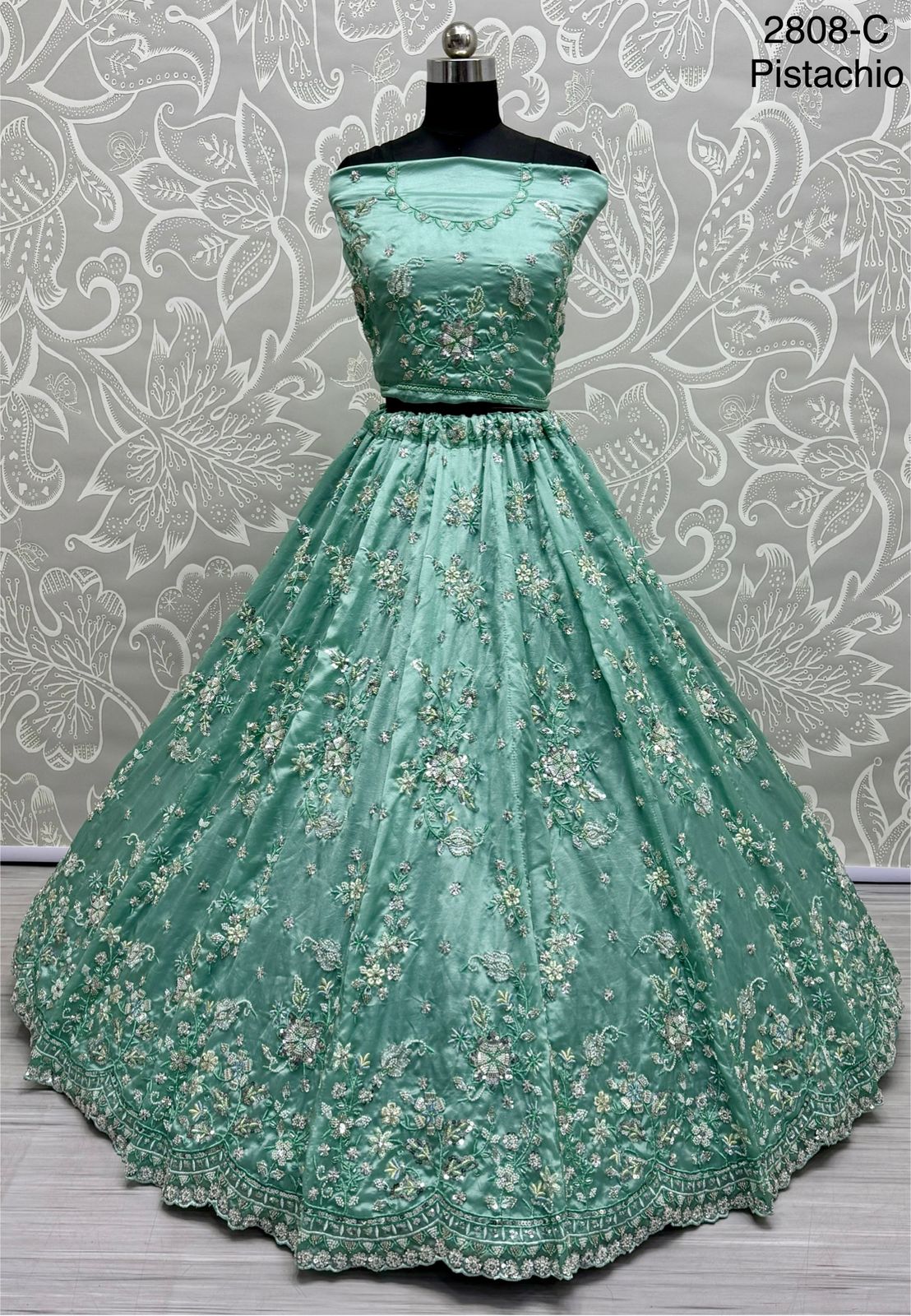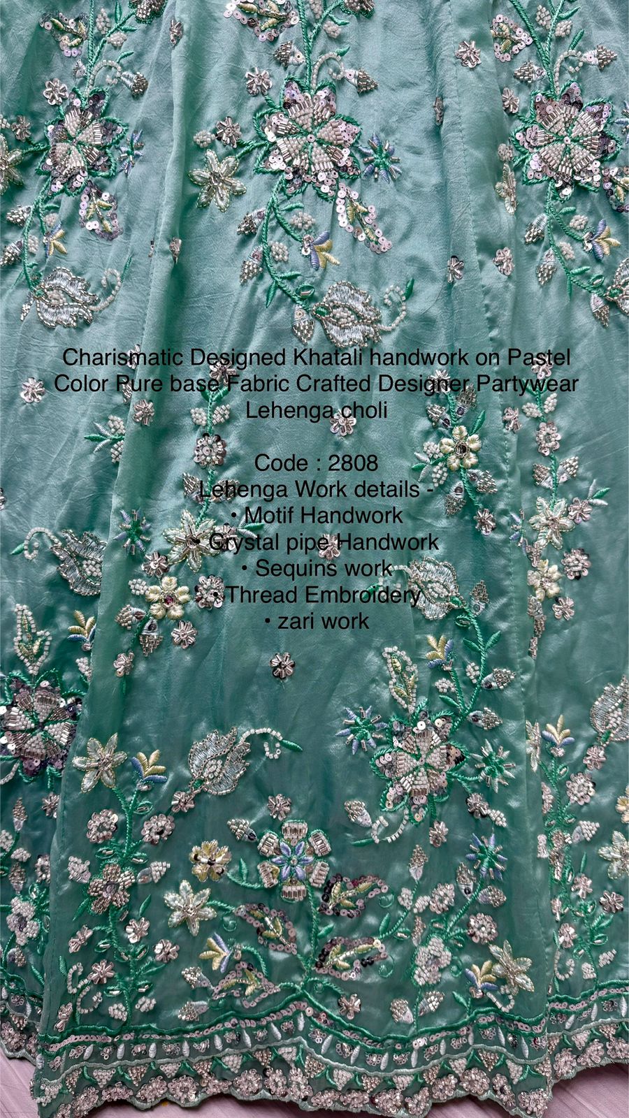 Pistac Bridal Silk Lehenga with Khatali Handwork on Pastel Color Pure base Fabric Crafted Designer Partywear Lehenga choli