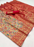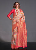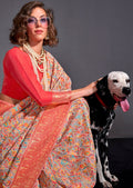 Beige Color Pure Knaaz Silk Modal Kashmiri Chaap Handloom Weaving Silk Saree