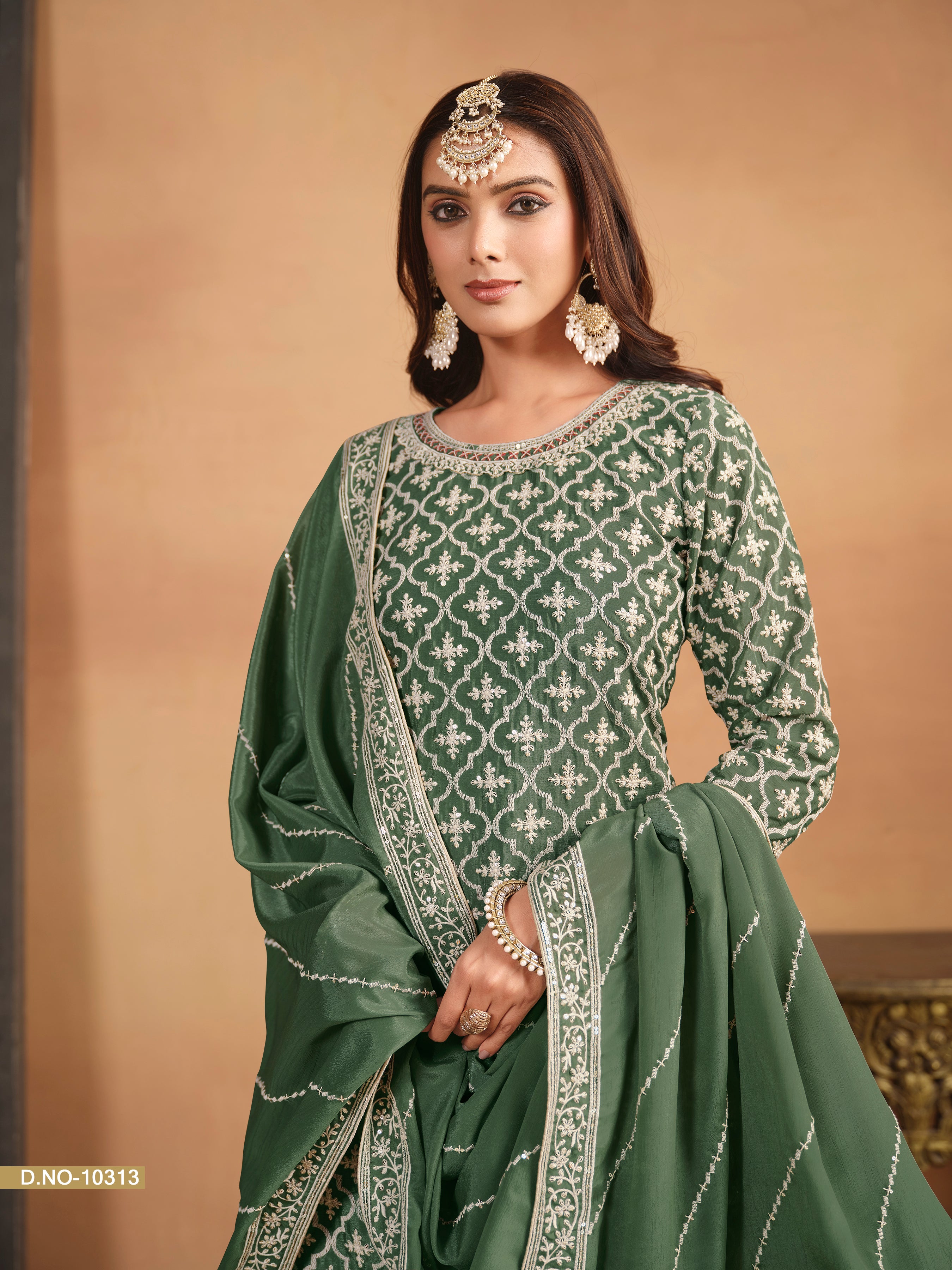 Green & Multicolour Designer Heavy Chinnon Silk With Embroidered Work Lehenga Choli