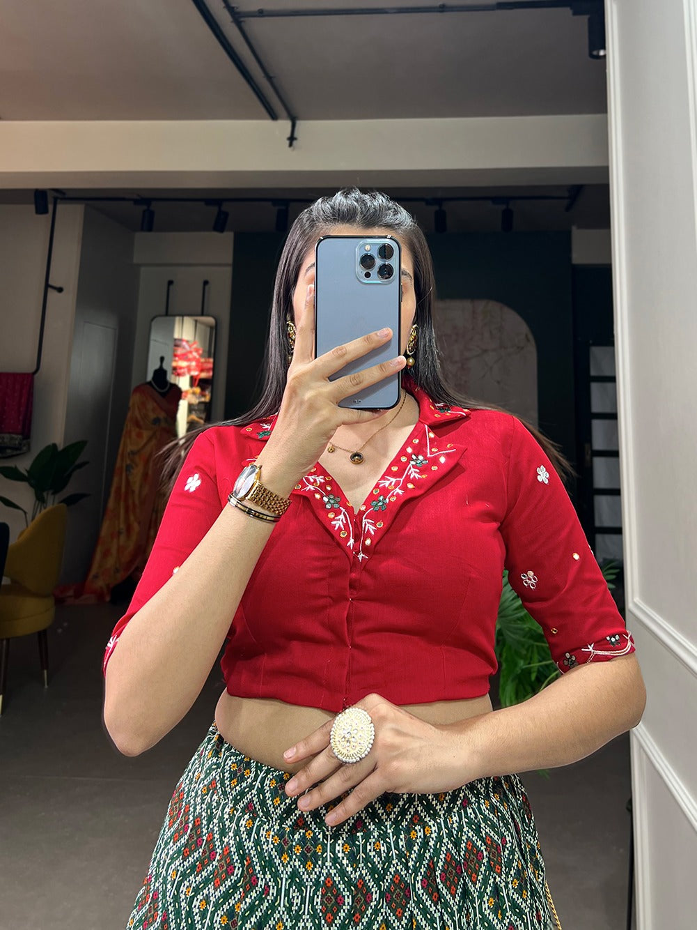Navratri Garba Traditional Green Patola With Foil Print Chaniya Choli for Women's