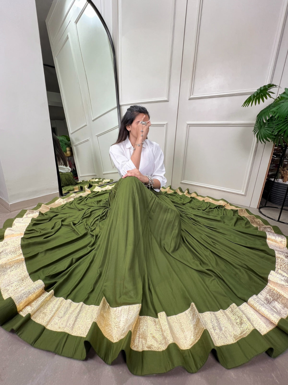 Navratri Garba Traditional Mehendi Pure Cotton Chaniya Choli for Women's