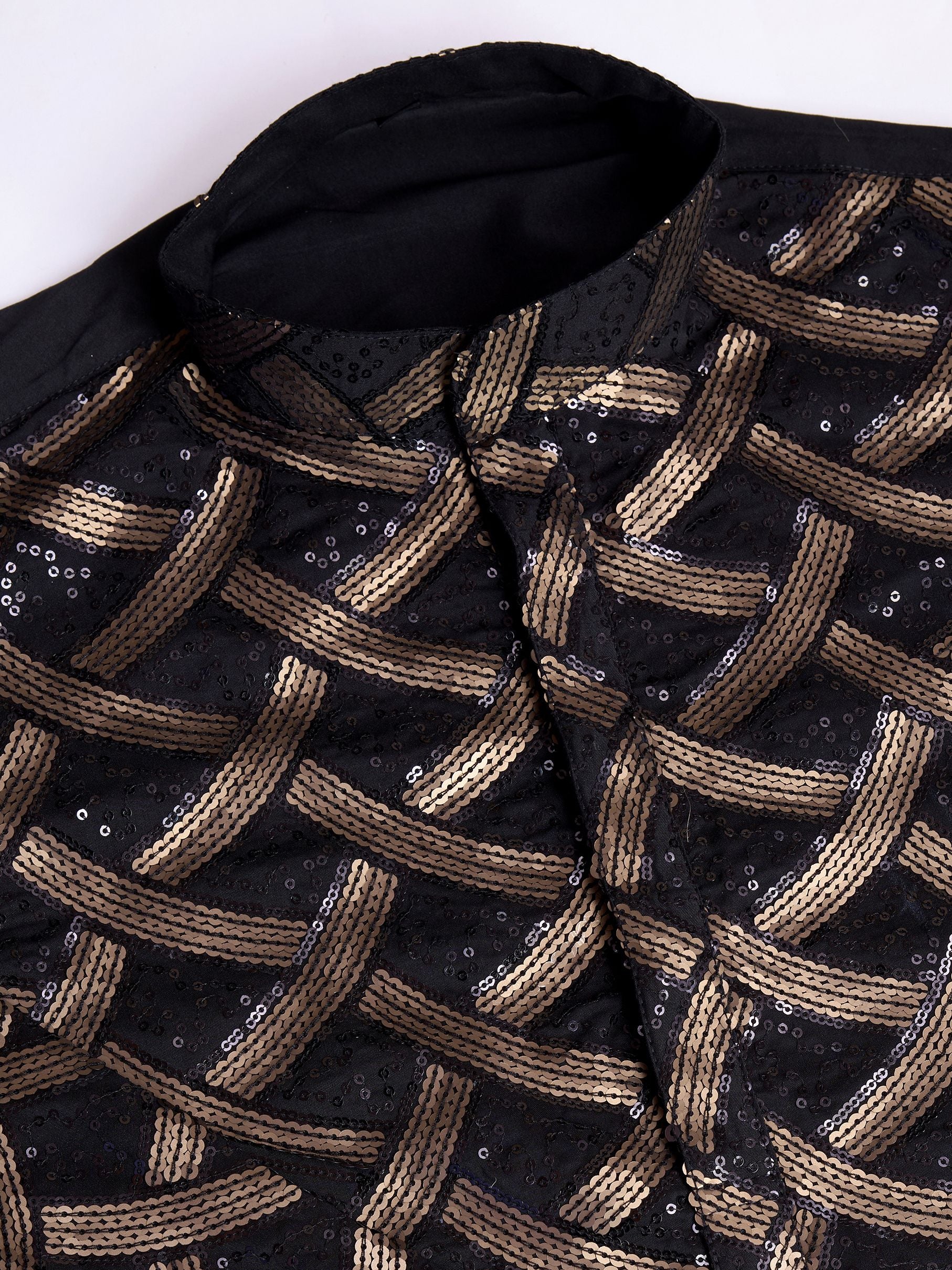 Black Colour Soft Silk Heavy Thread Work With Sequines Work Kurta Payjama