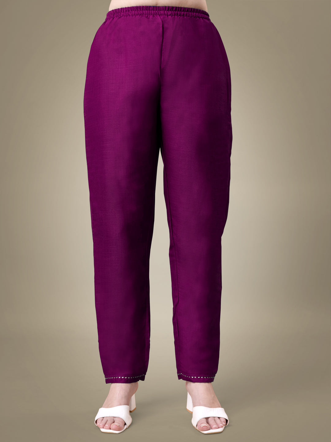 Purple Heavy Cotton Blend with Embroidery Work Kurti Set