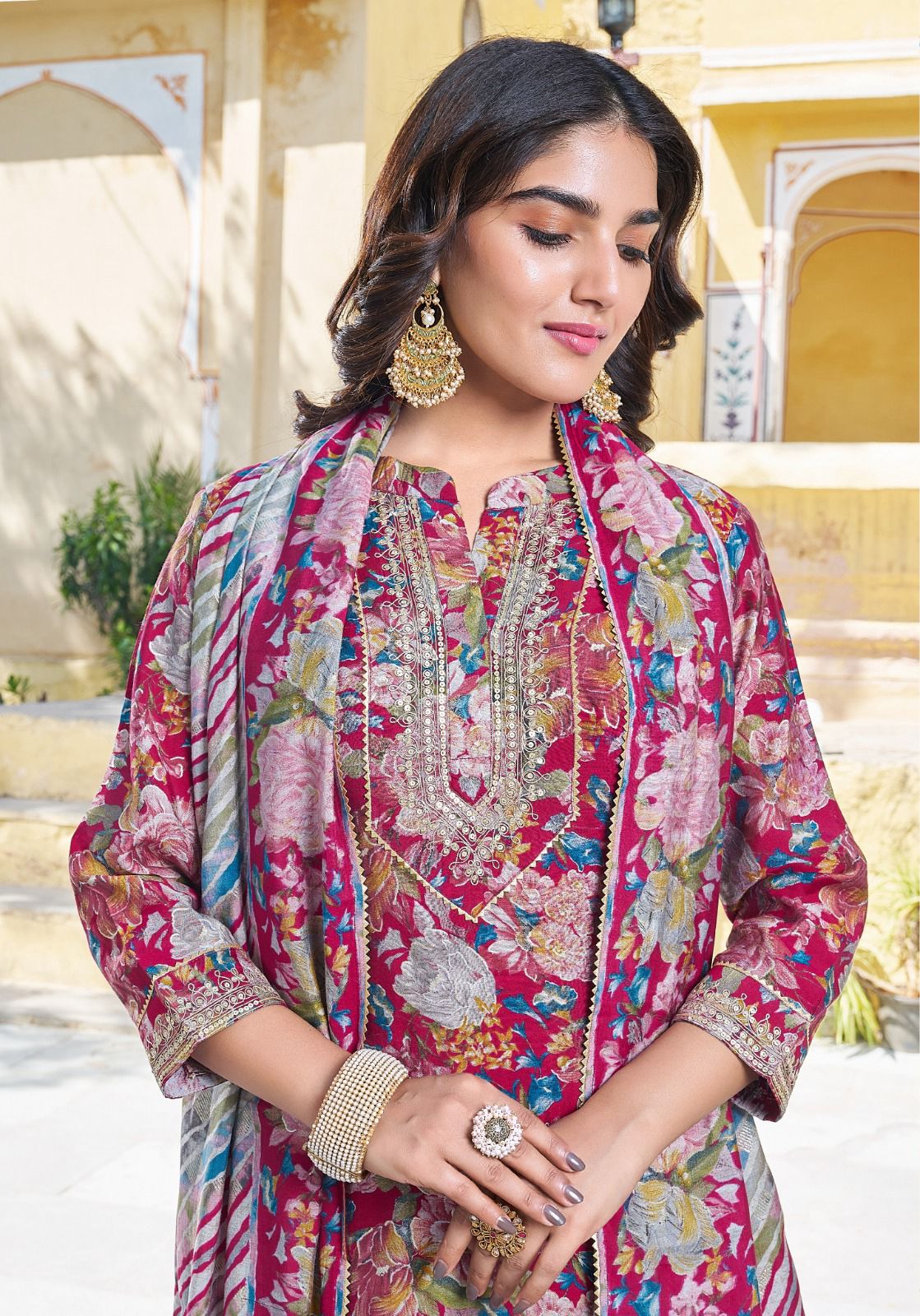 Fabric:-Modal Chanderi Print With Embroidery Koding Work