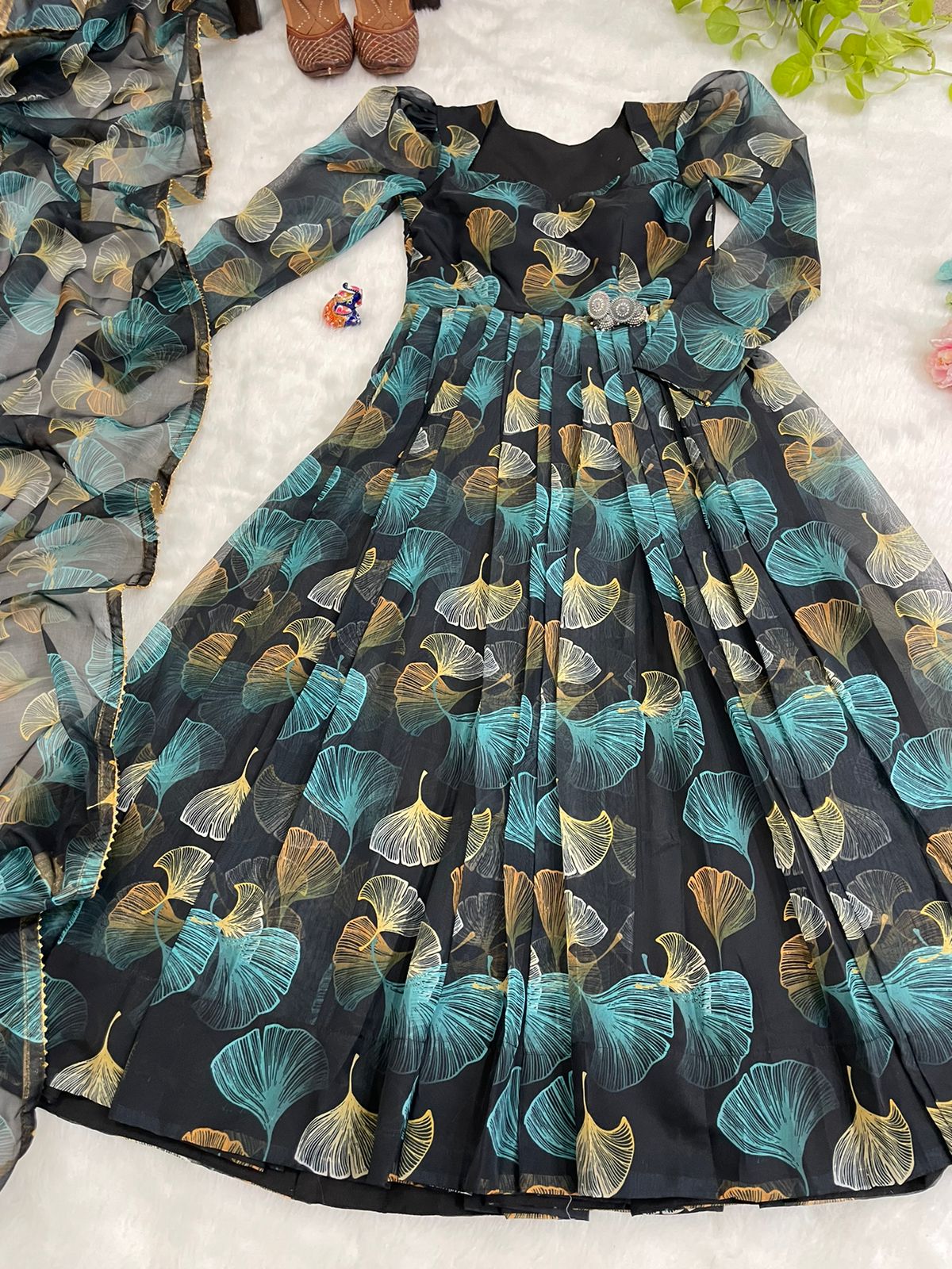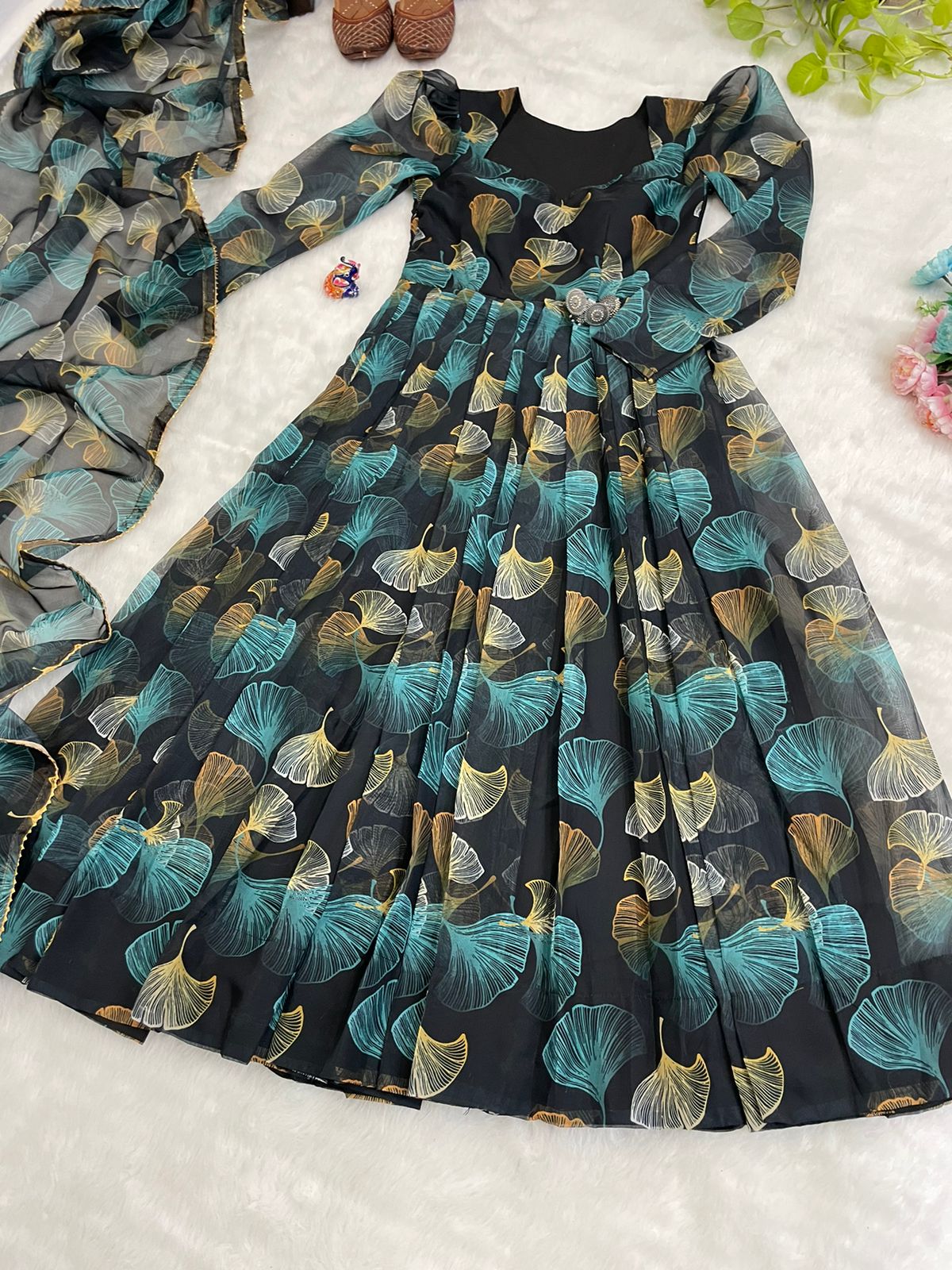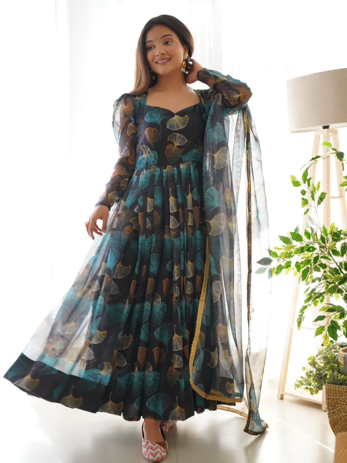 New Party Wear Look Organza Taby Silk Gown With Dupatta