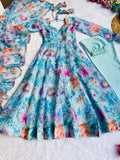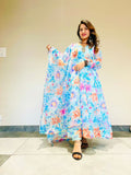 New Party Wear Look Organza Taby Silk Gown With Dupatta , bottom