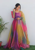 Gown Febrics Organza Silk Heavy Quality Fabric With Digital Print And Handwork π₯Gold Foil , Full Sleeve