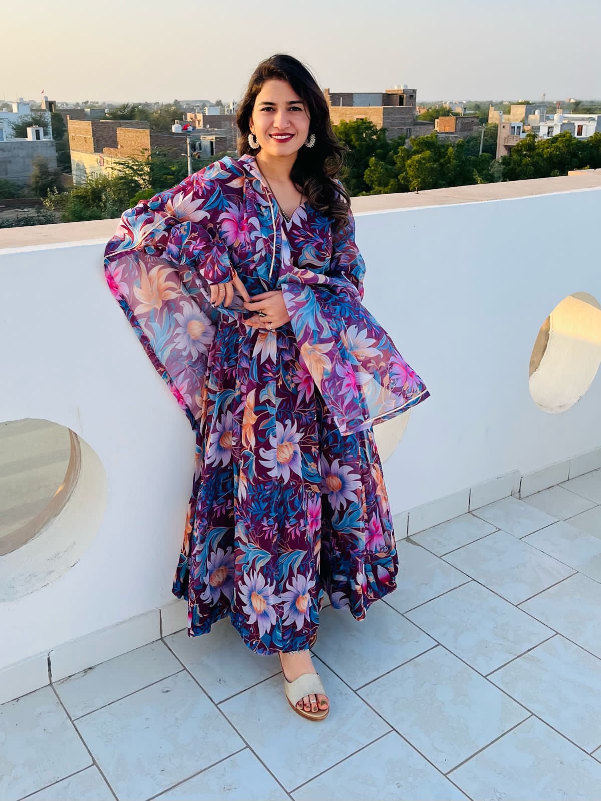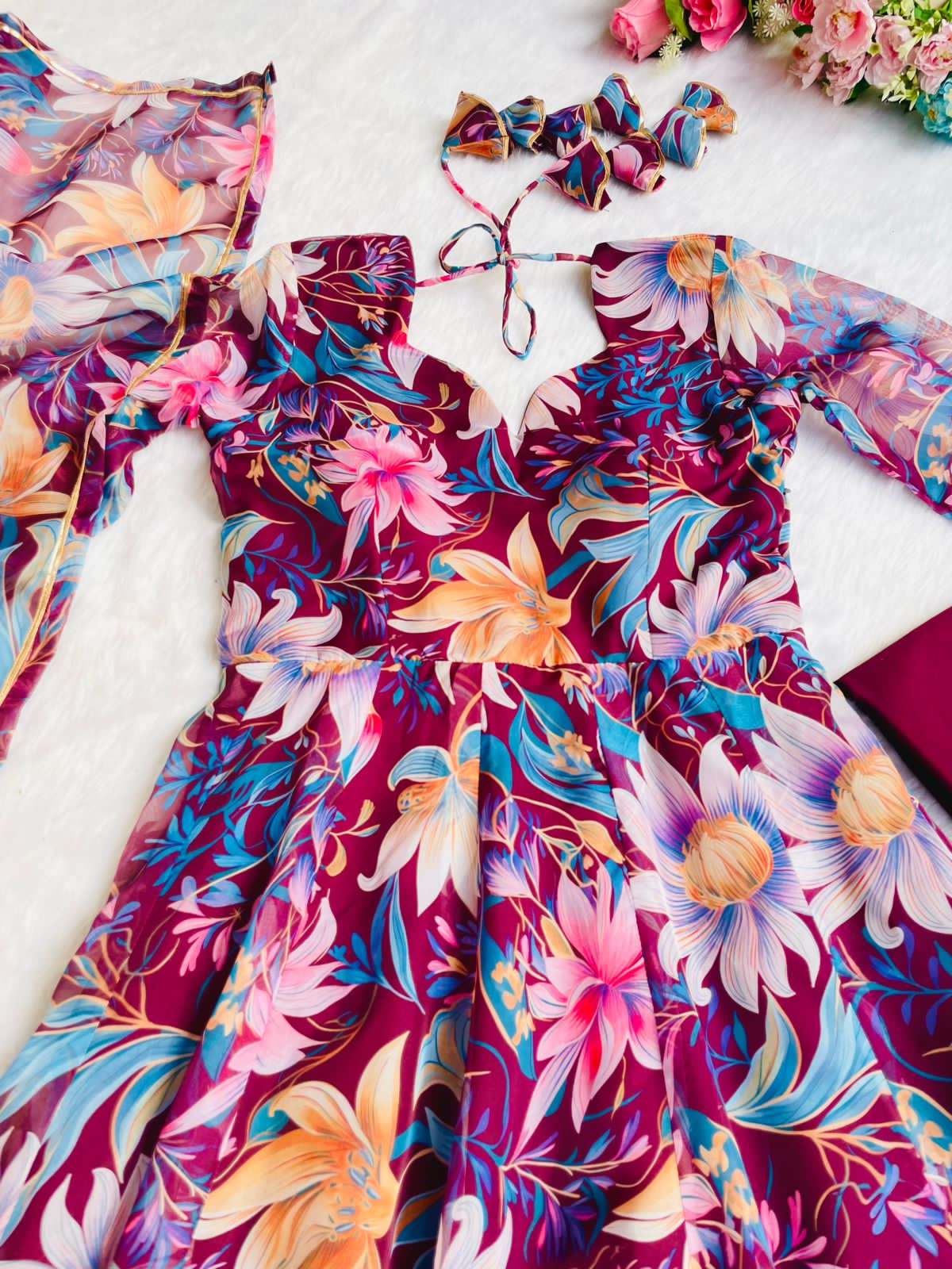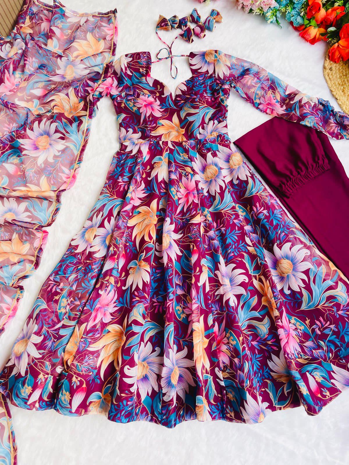 Gown Febrics Organza Taby Silk Heavy Quality Fabric With Digital Print And , Full Sleeve