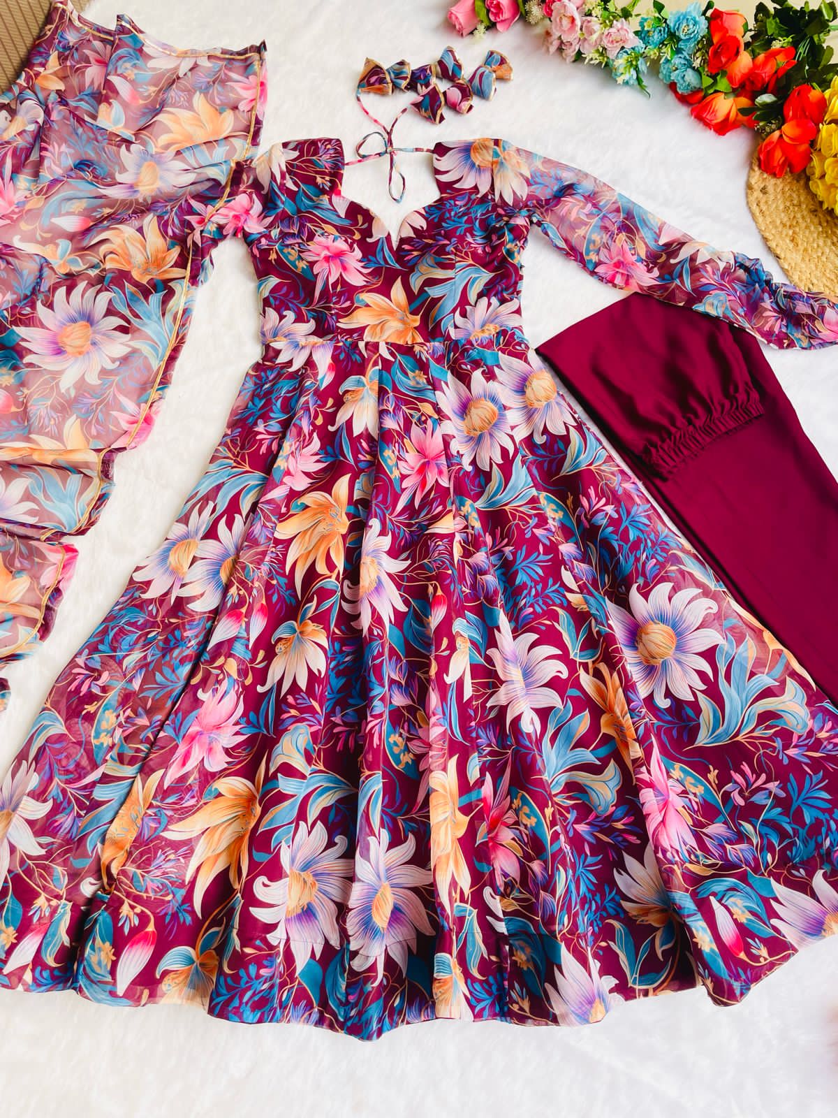 New Party Wear Look Organza Taby Silk Gown With Dupatta , bottom