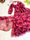 Gown Febrics Organza Taby Silk Heavy Quality Fabric With Digital Print And Handwork , Full Sleeve