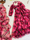 New Party Wear Look Organza Taby Silk Gown With Dupatta