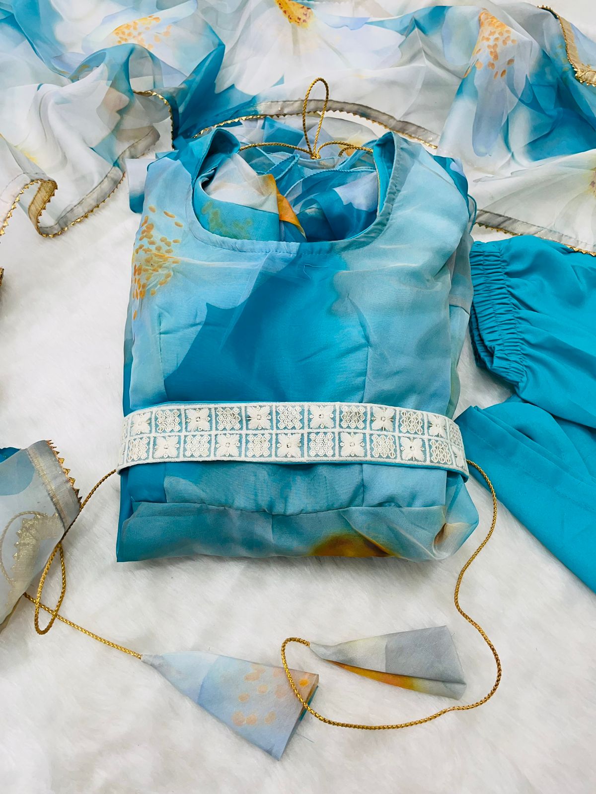 Dupatta : Organza Taby Silk With Digital Print , Four Side Golden Gotta Lece Broder β¦.