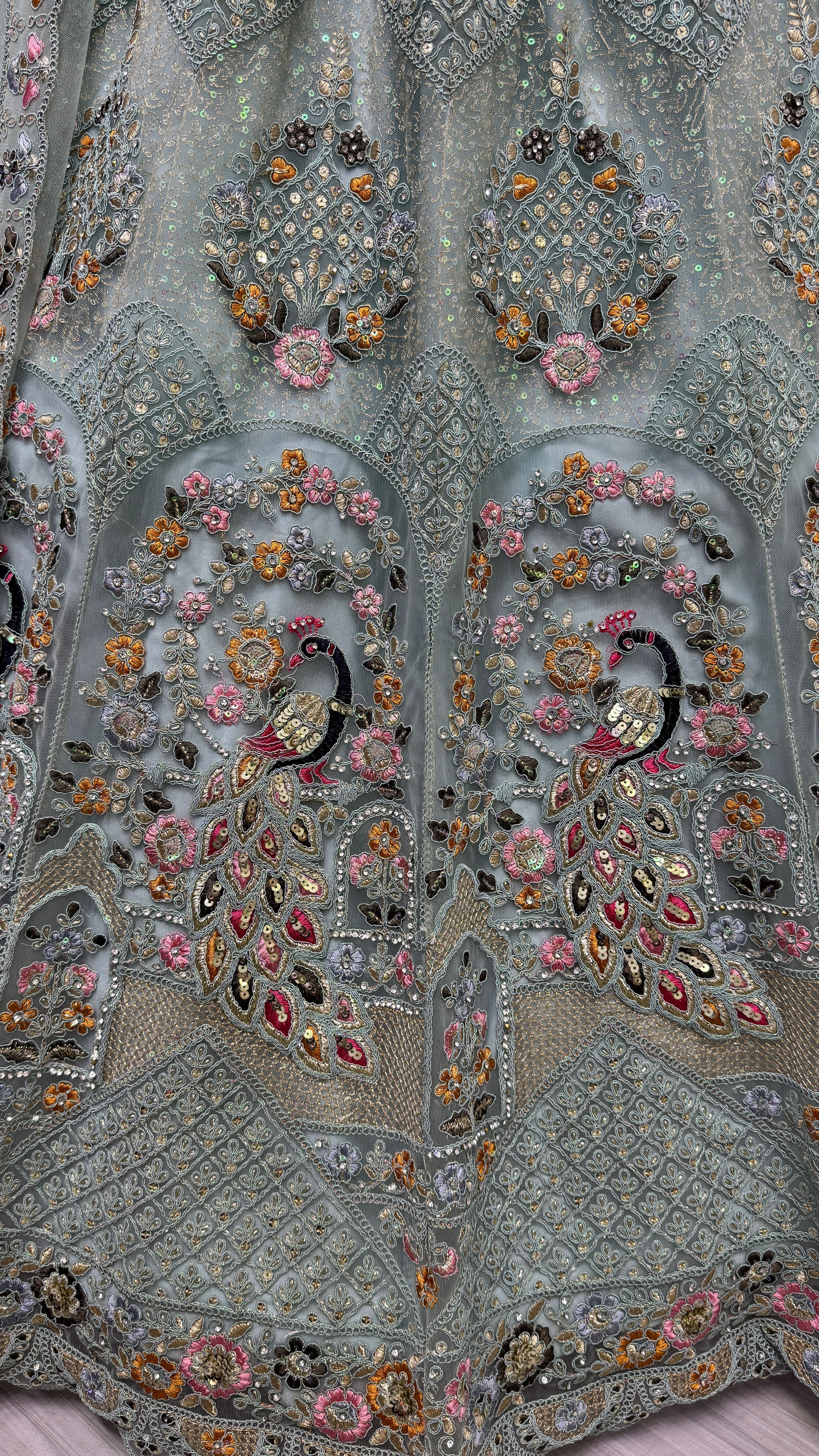 Aqua Colour Wedding Designer Heavy Net Multi Thread work Dori Embroidery with Fancy Dupatta Bridal Lehenga Choli