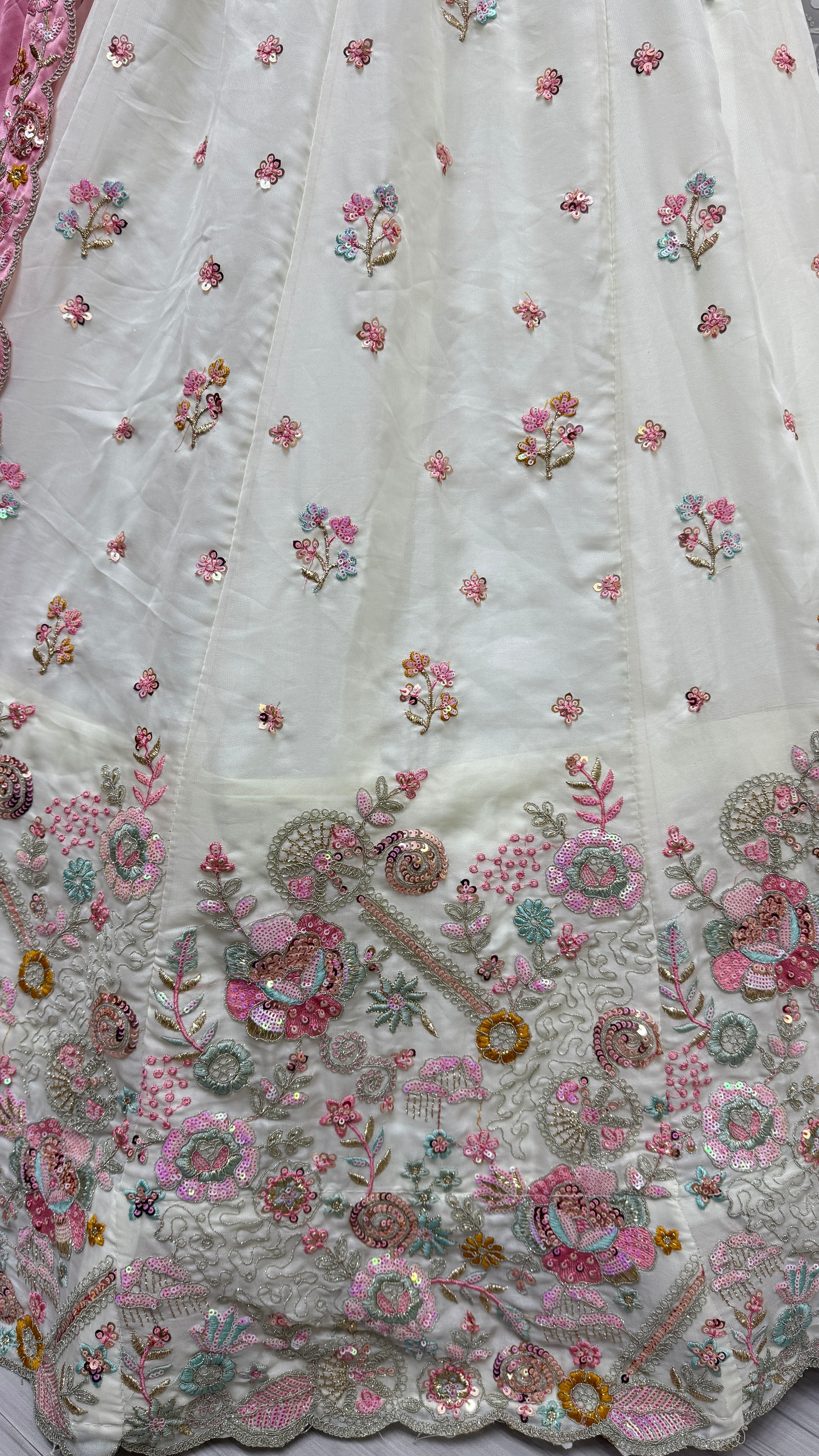 White Bridal Silk Lehenga with Stunning Embroidery and Stone Work