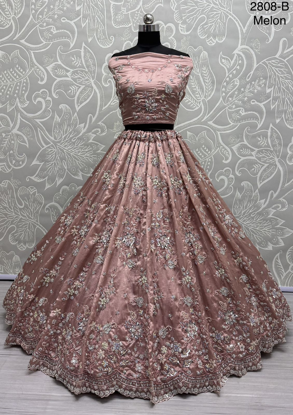 Melon Bridal Silk Lehenga with Khatali Handwork on Pastel Color Pure base Fabric Crafted Designer Partywear Lehenga choli