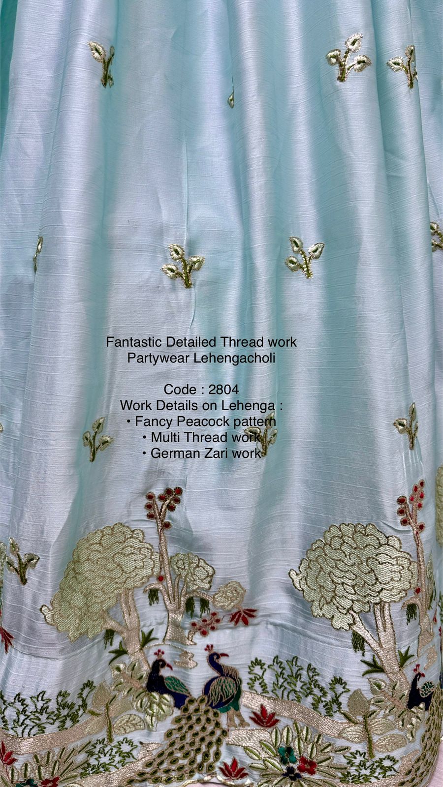Sky Colour Bridal Silk Lehenga with Khatali Handwork on Pastel Color Pure base Fabric Crafted Designer Partywear Lehenga Choli