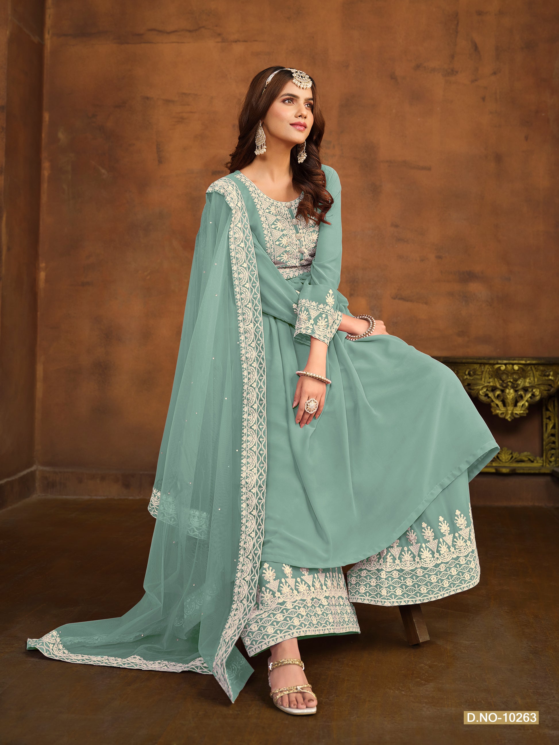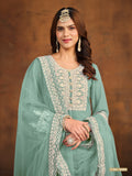 Sea Green Pure Faux Georgette Heavy Embroidered Palazzo Suit