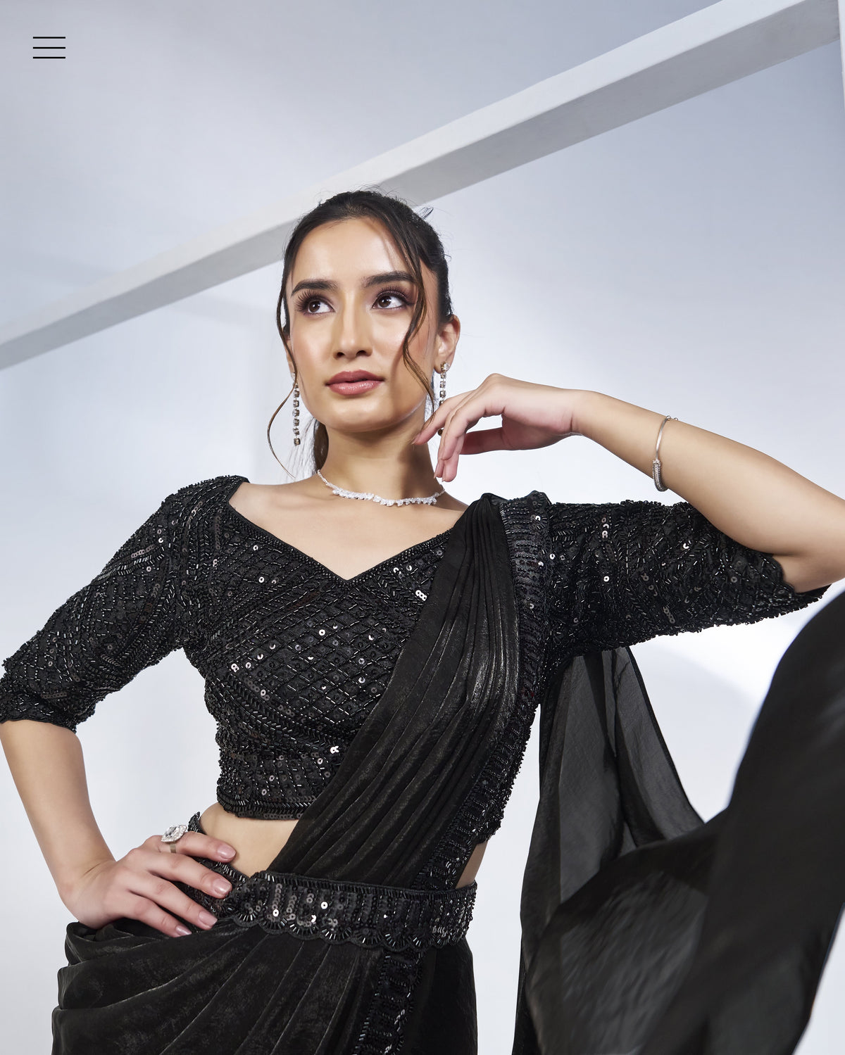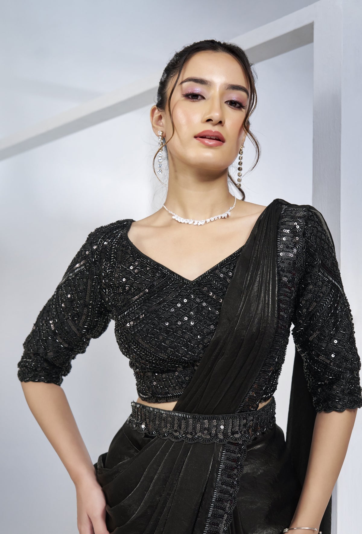 Black Two Tone Satin Silk Designer Ready to wear saree