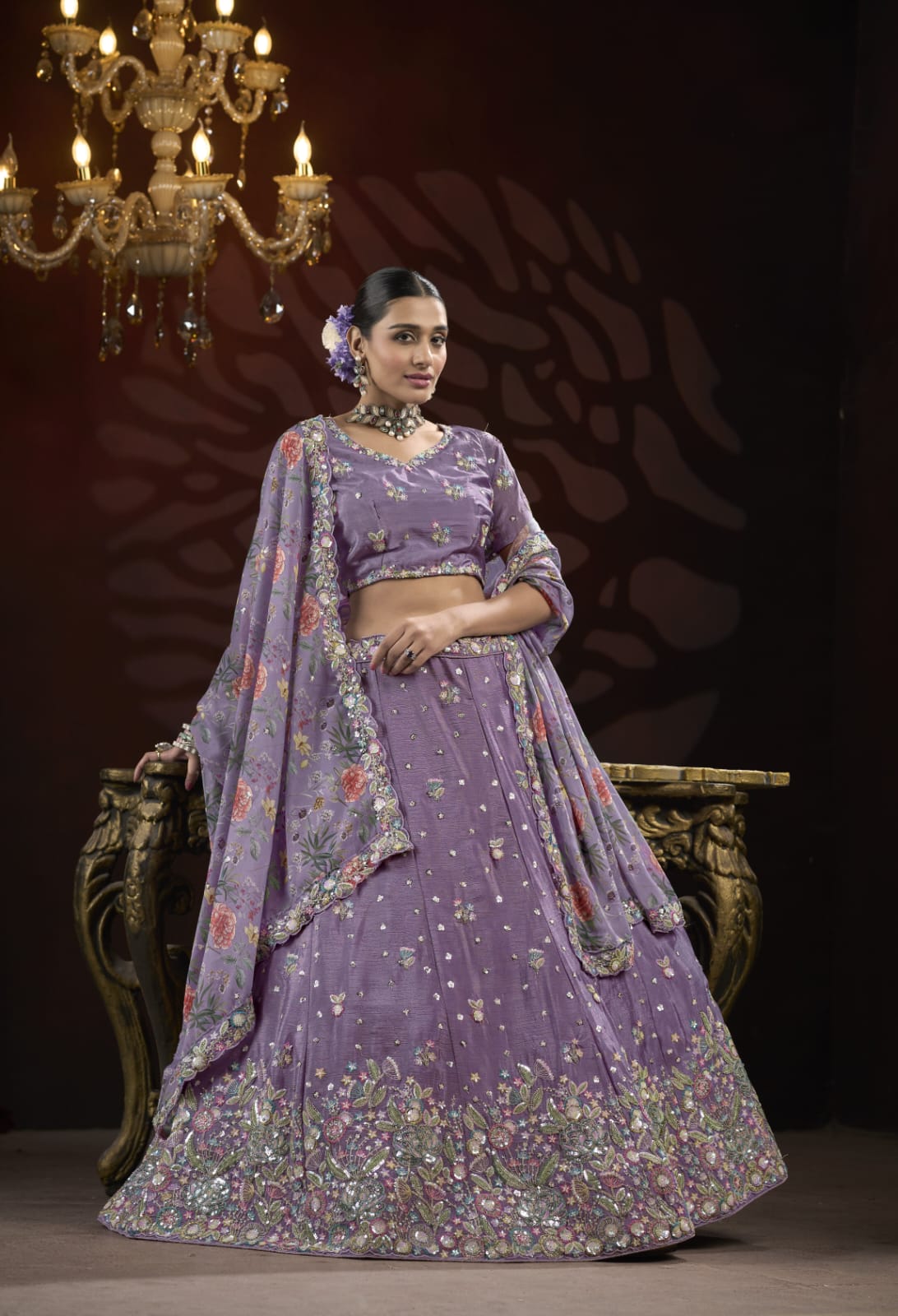 Purple Colour Multi Thread Work with Heavy Zari Sequins Embroidery Partywear Designer Lehenga Choli loading