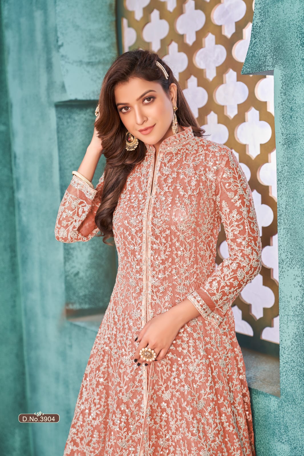 Prach Colour Pure Soft Net with Heavy Cording & Sequins Work Readymade Gown