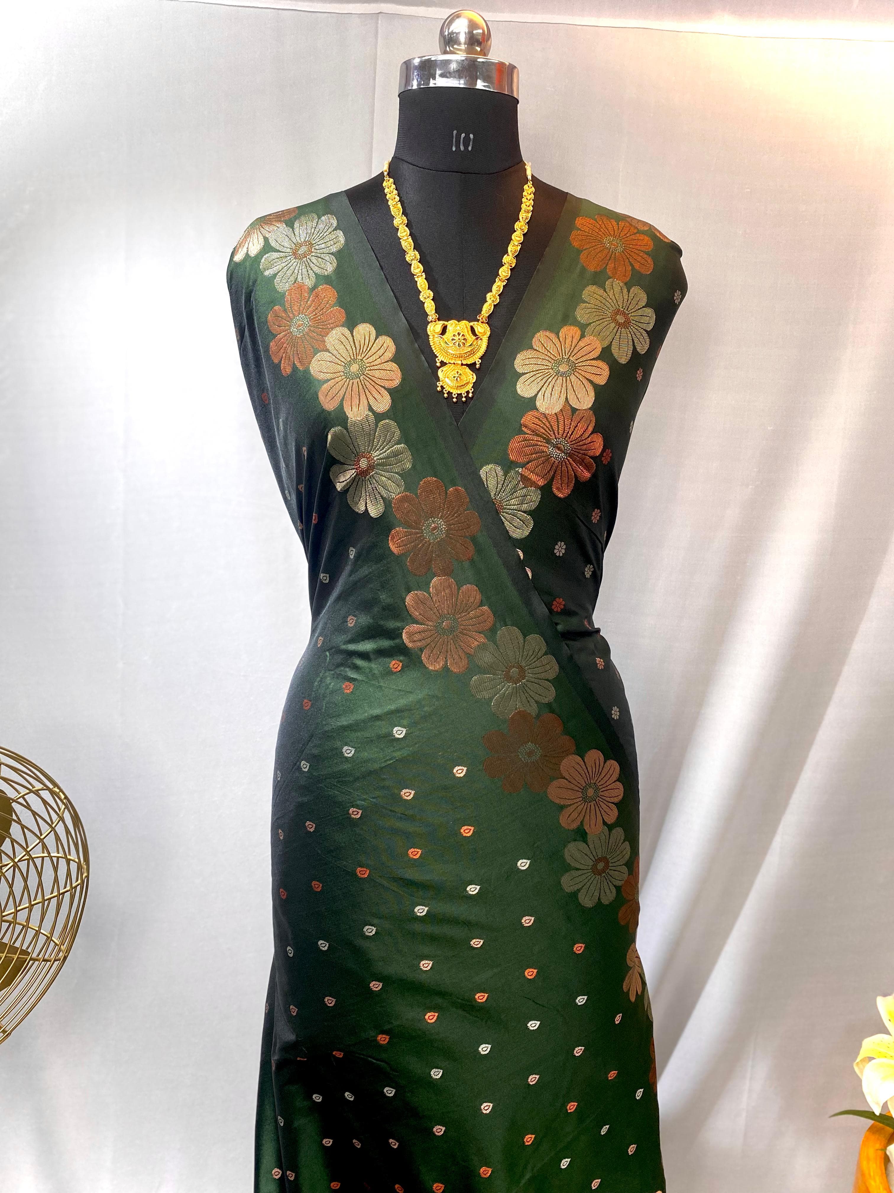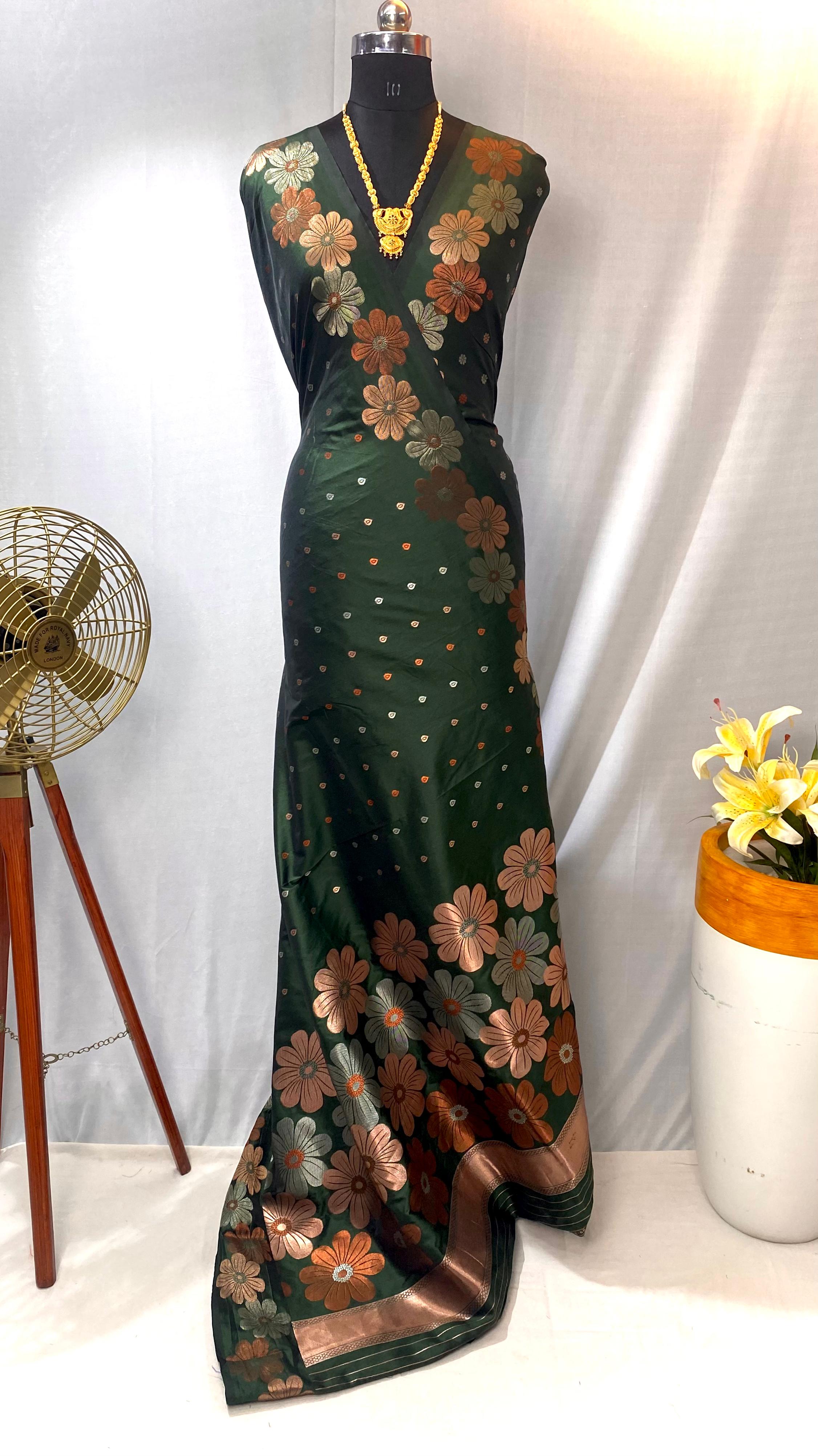 Pure Soft Silk Saree With Copper And Gold Weaving All Over Saree With Flower  And All Over Buttis And Fully Weaved Blouse