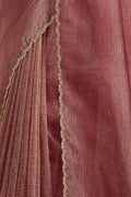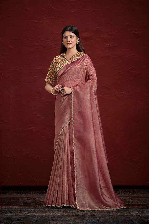 Light Maroon Pure Banarasi Jari pleat Stone with Handwork Saree