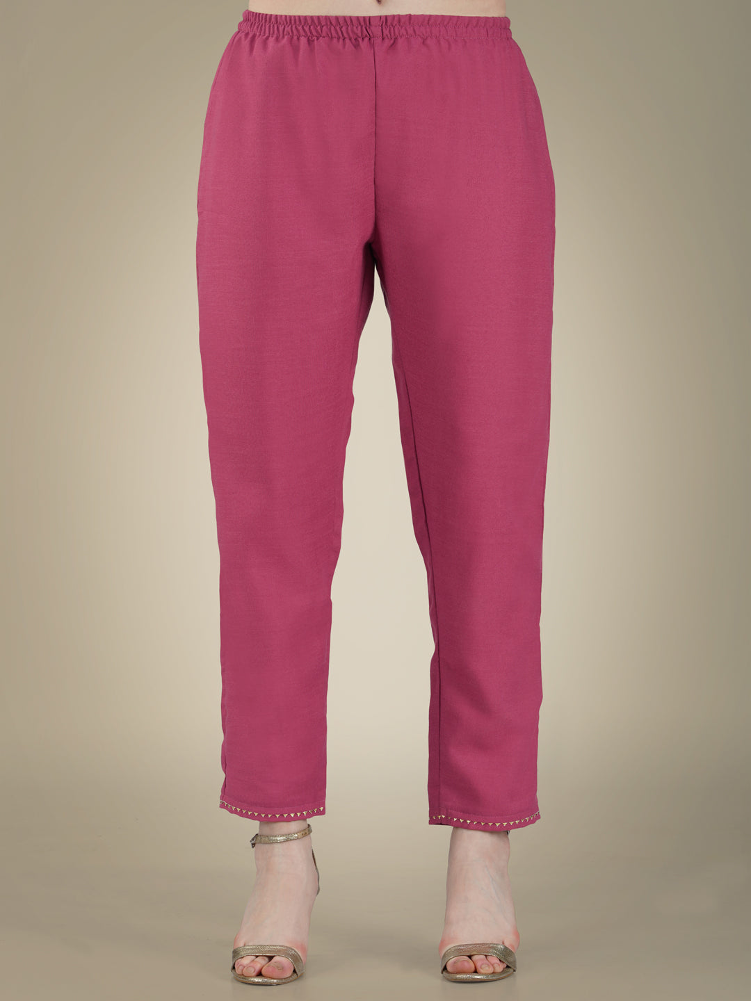 Wine Rayon Print with Embroidery & Sequence Work Kurti Set loading