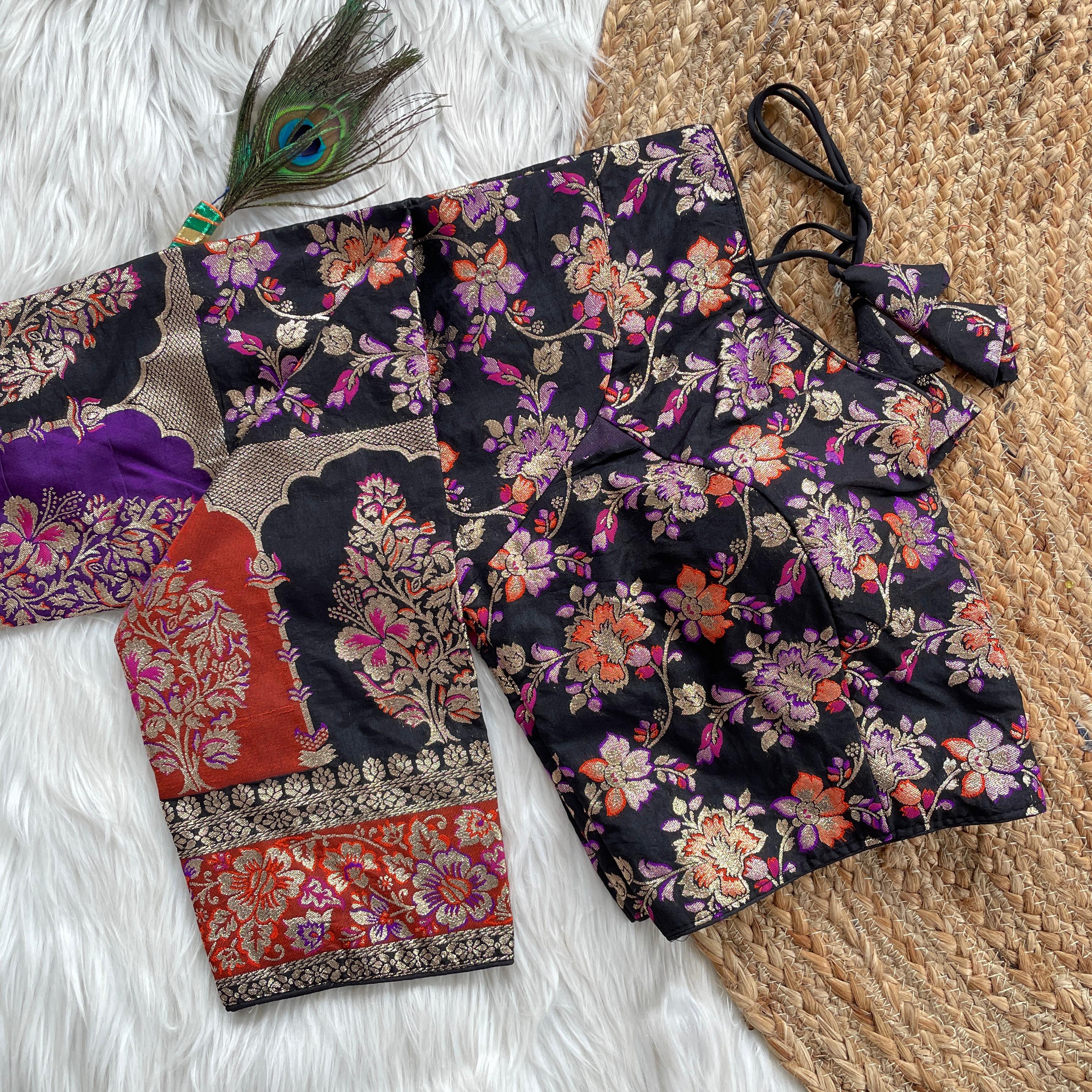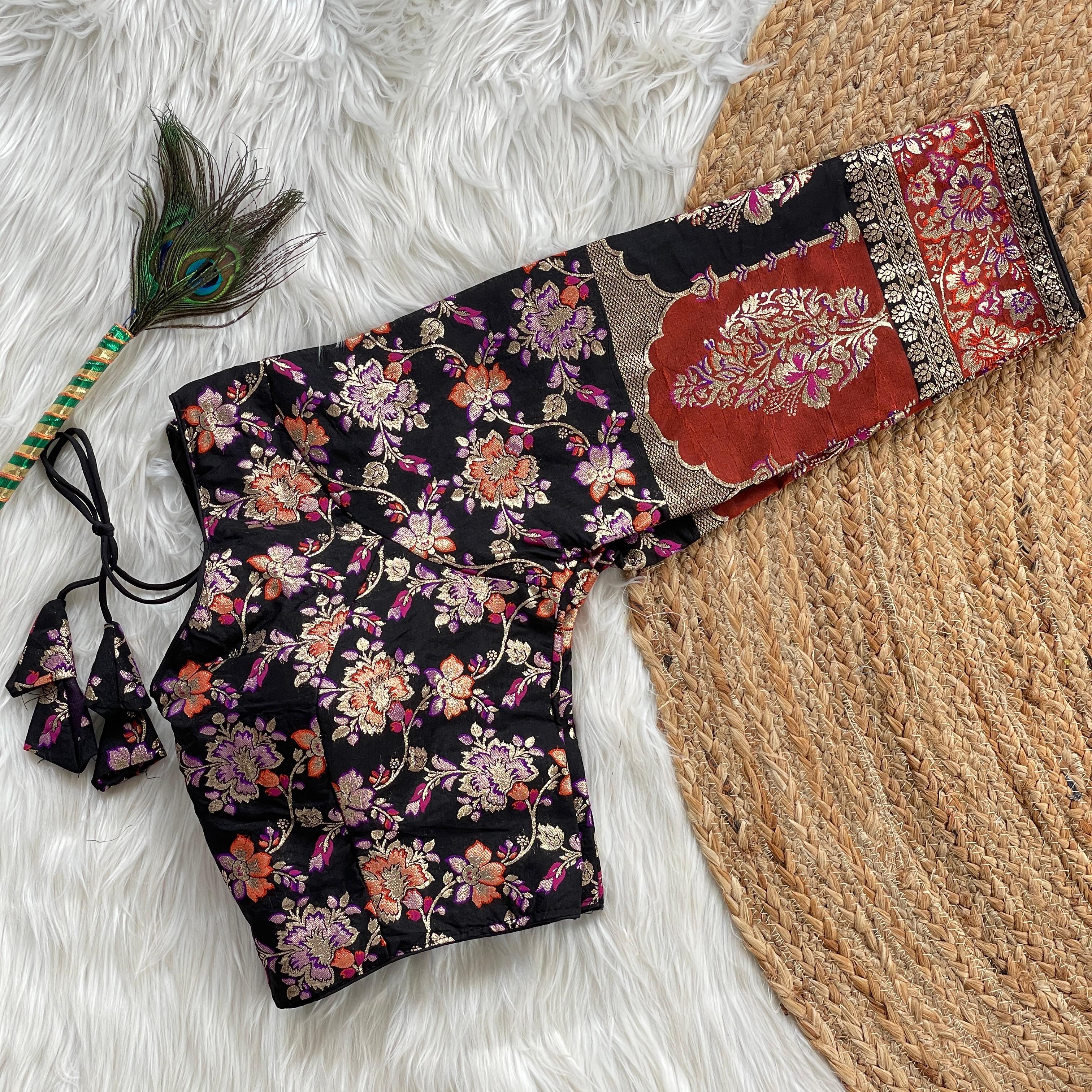 Readymade Designer Long Sleeves Pure Dola Silk With Multicolour Weaving Blouse