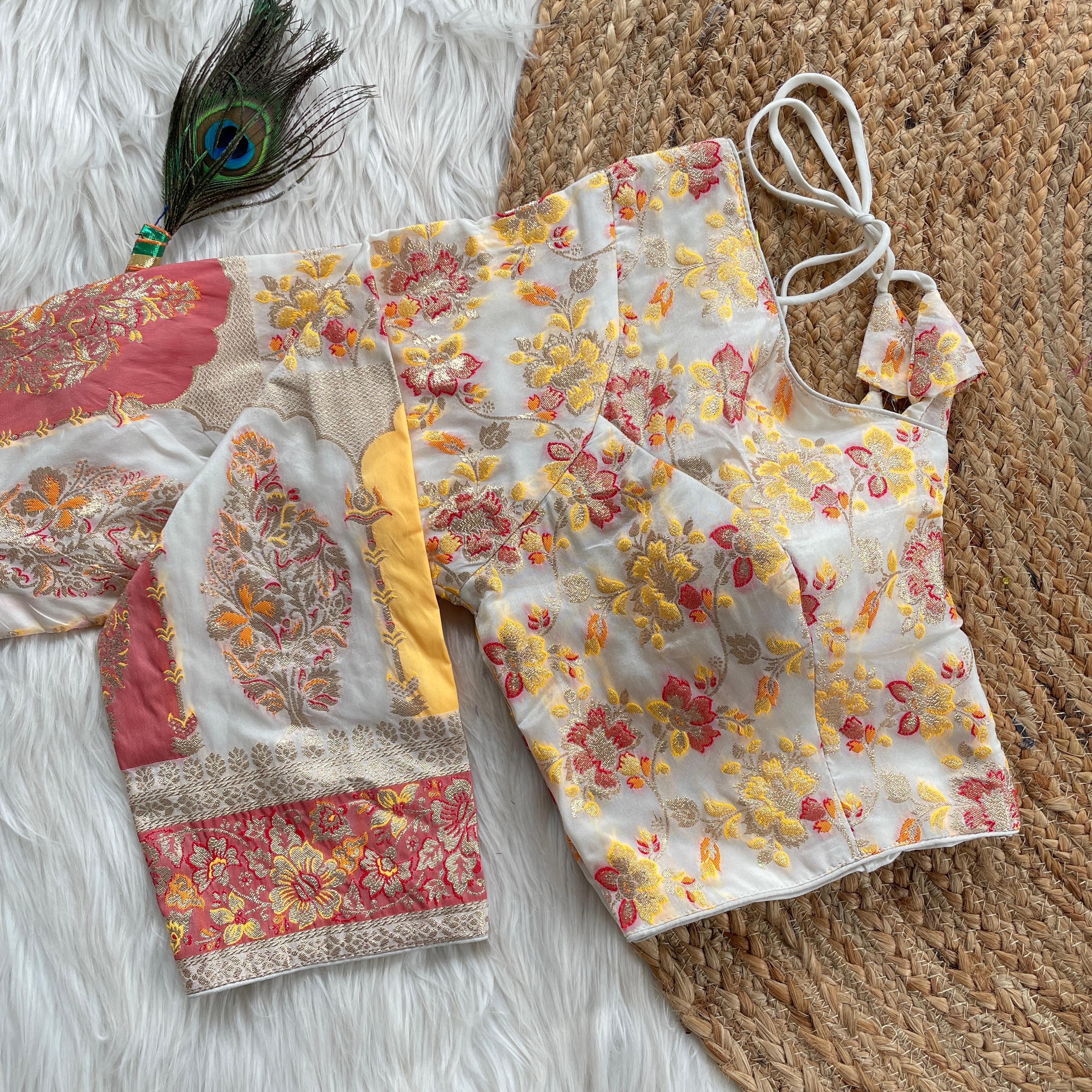 Readymade Designer Long Sleeves Pure Dola Silk With Multicolour Weaving Blouse