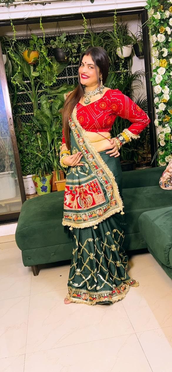 Green Pure Jacquard Soft Silk Traditional Bandhani Saree