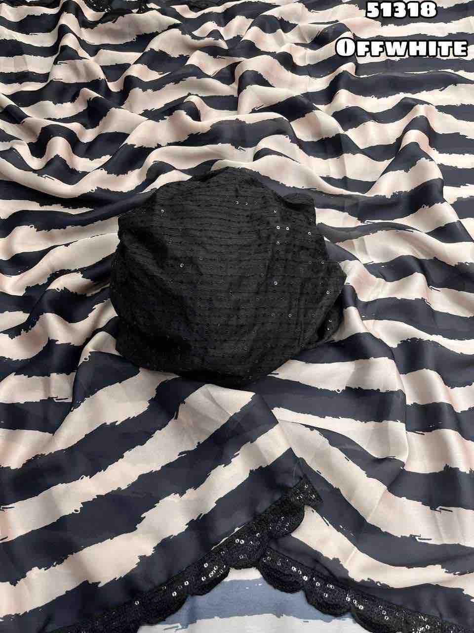 Women's Designer Party Wear Georgette Satin Black & White Digital Printed Saree