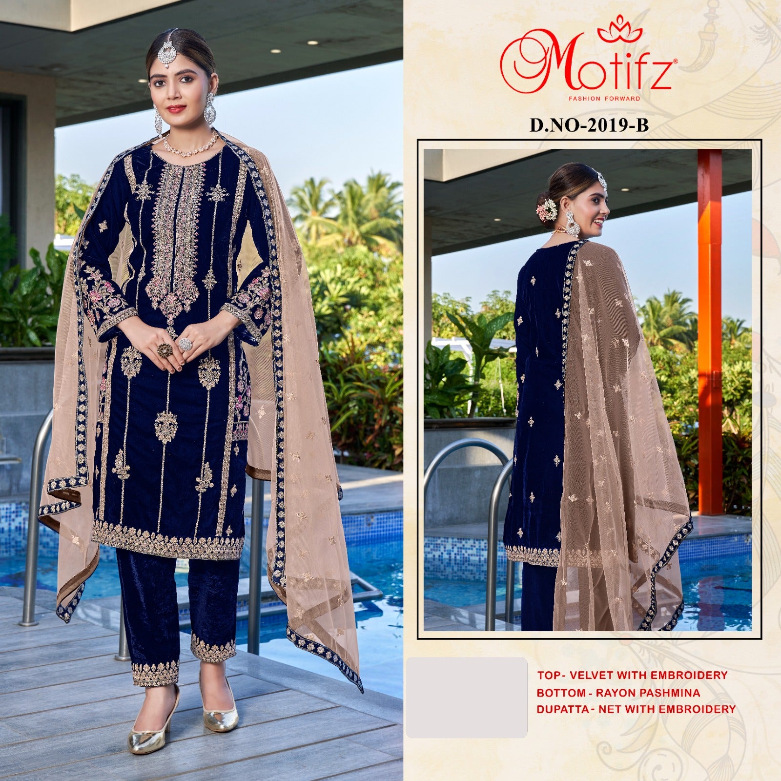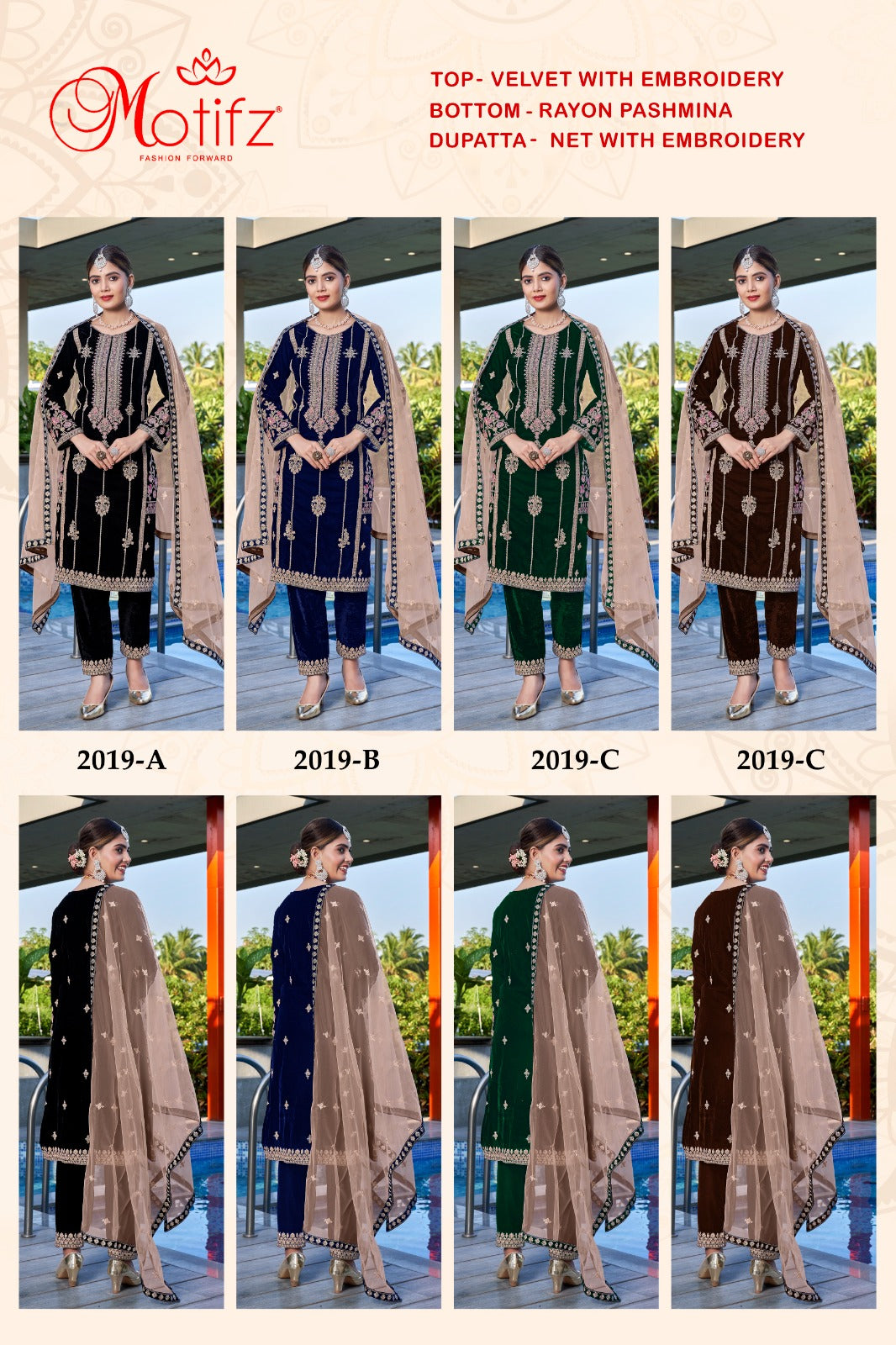 Motifz 2019-A To 2019-D Series Velvet Embroidery Dresses (1350x04)