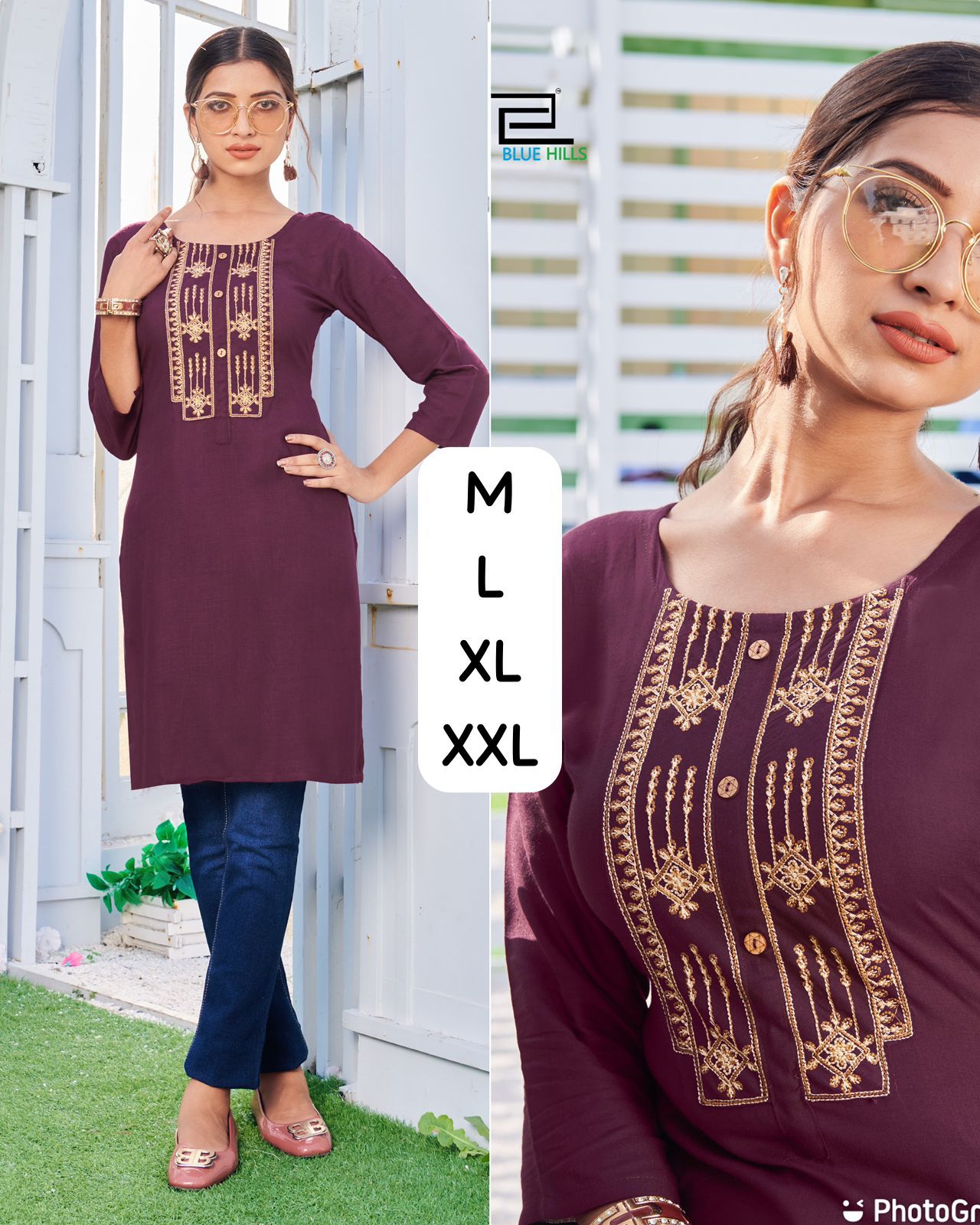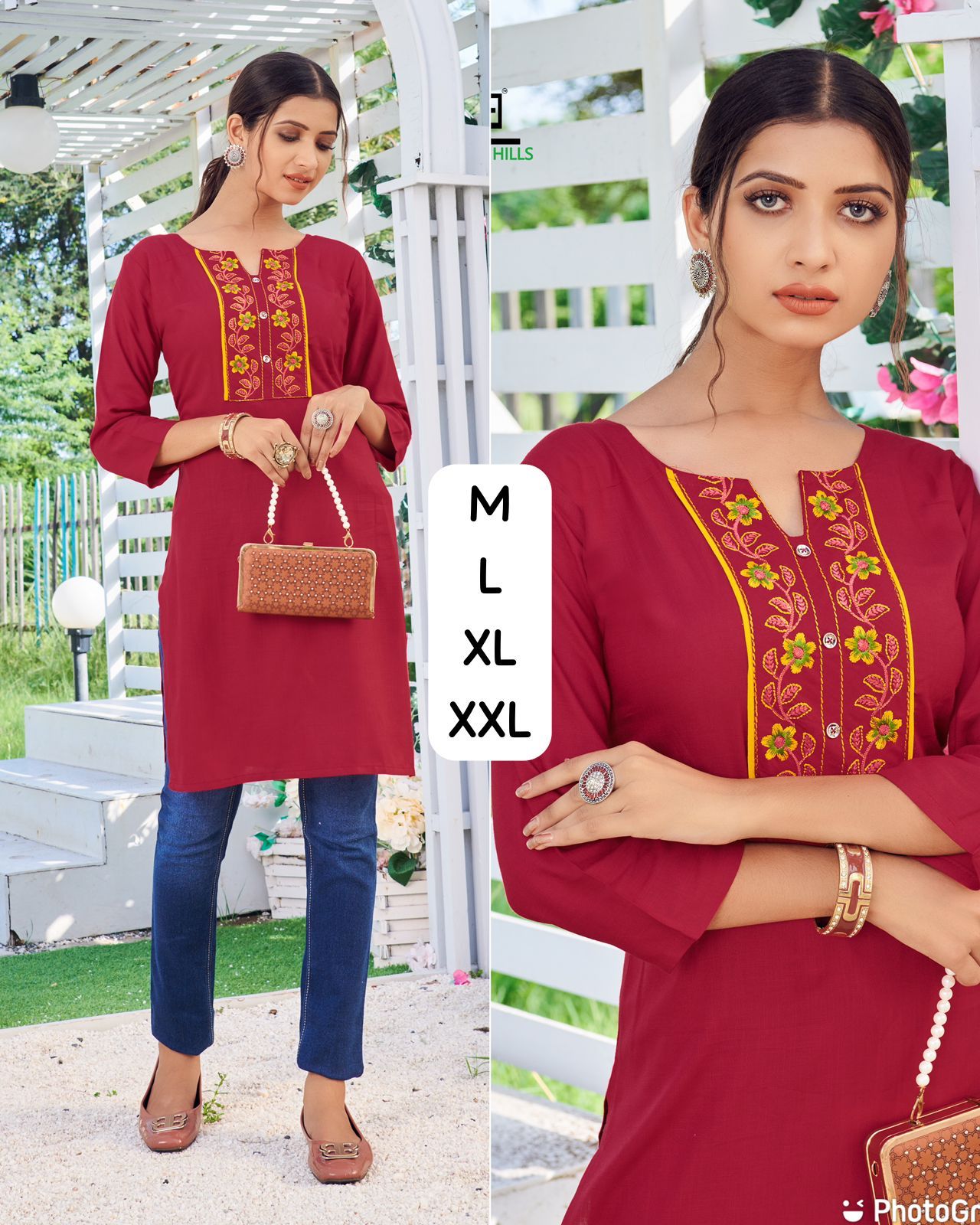 City Girl - Purple Rayon Casual Wear Kurti With Embroidery Work Casual Wear Kurtis (400x4)