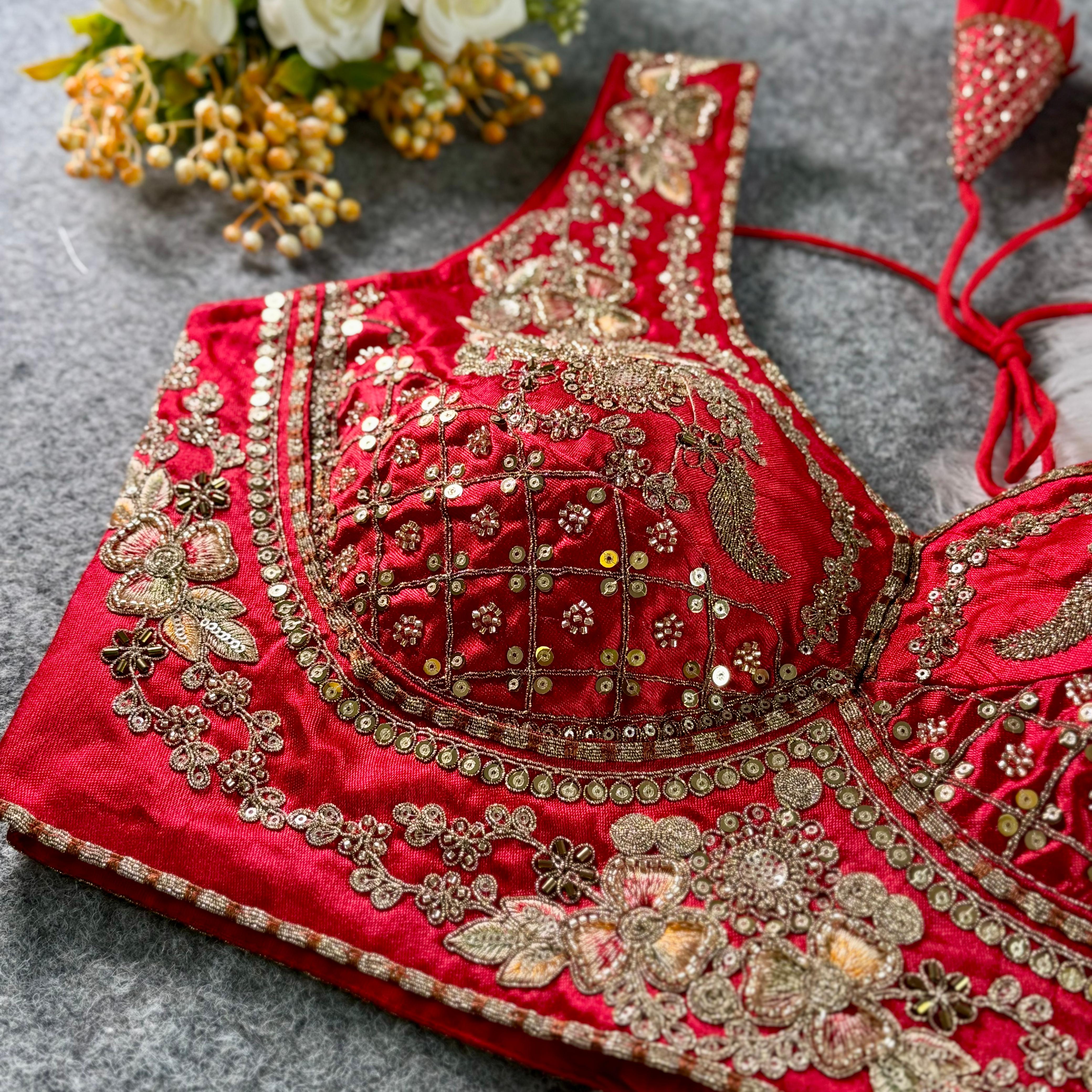 Wedding Designer Sabyasachi Style Heavy Handwork Sequence & Codding Thread Work Bridal Look Readymade Blouse