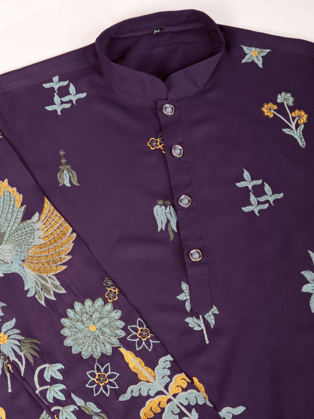 Purple Colour Soft Viscose Reyon Silk Heritage Style With Heavy Thread Work With Sequines Work Kurta Payjama