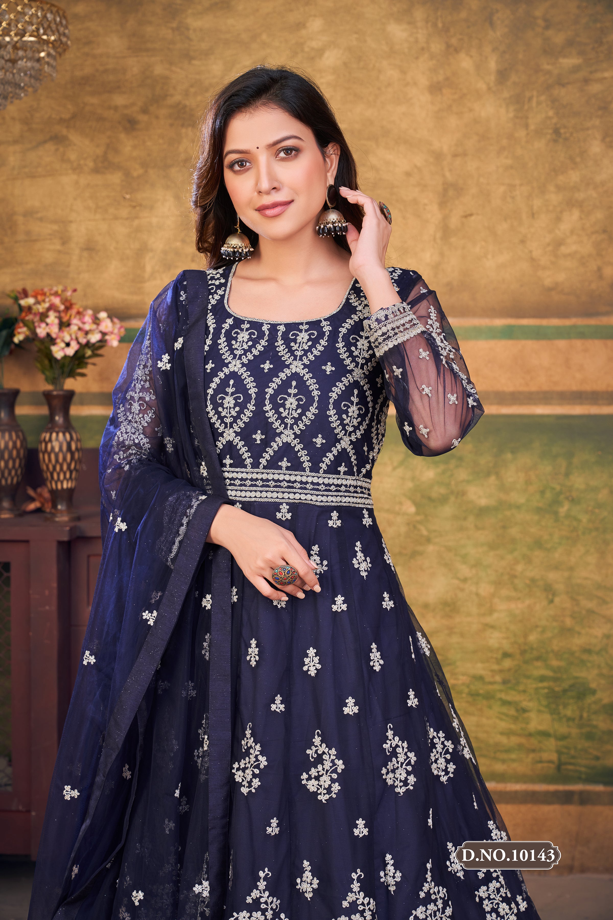 Blue Pure Soft Net Long Floor Length Embroidered Work Readymade Gown
