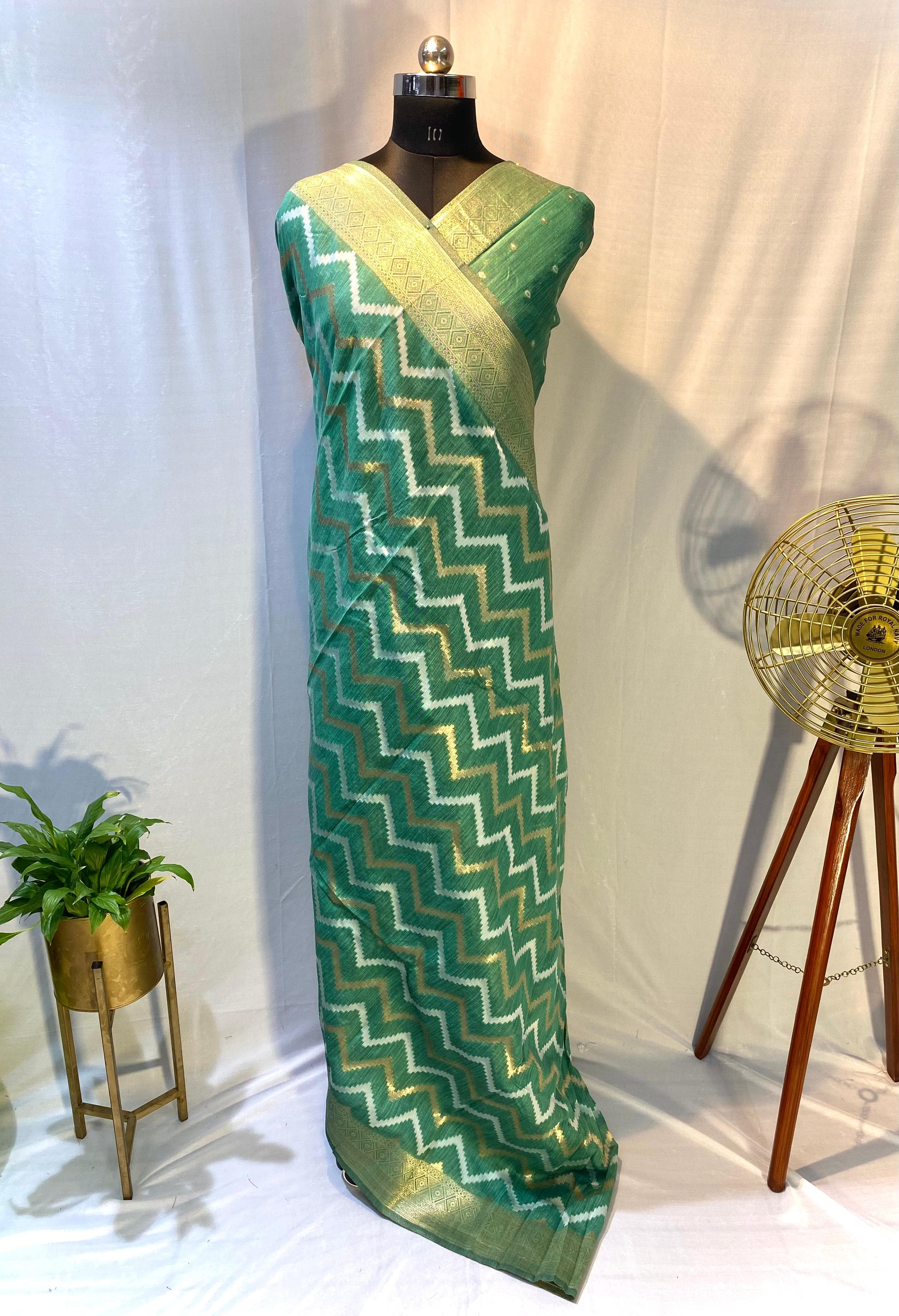 • Women's Designer Indian Style Banarasi Pure Linen Cotton Saree