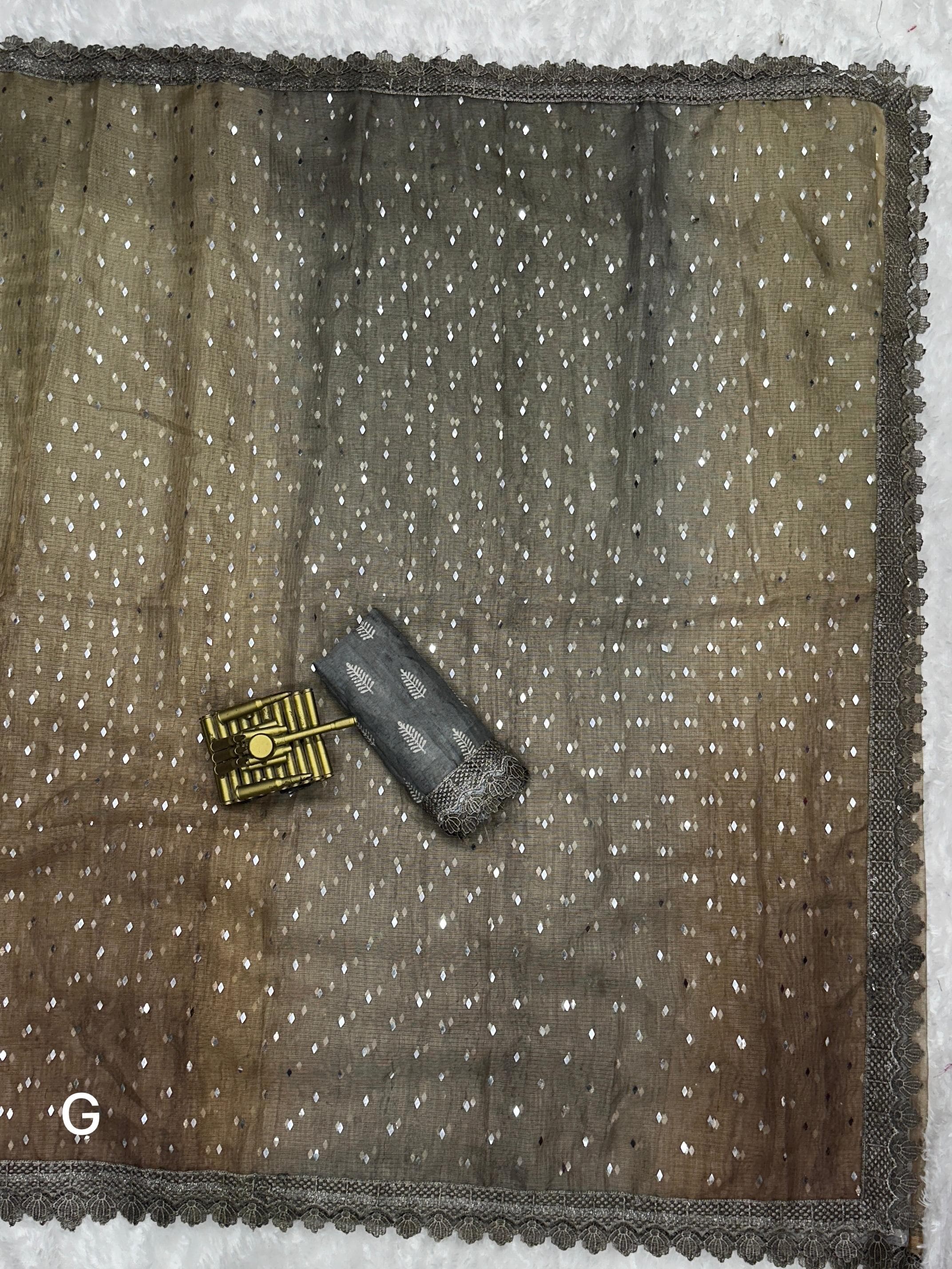 Saree- Digital print with Glitter sequin work with cut work GPO lace