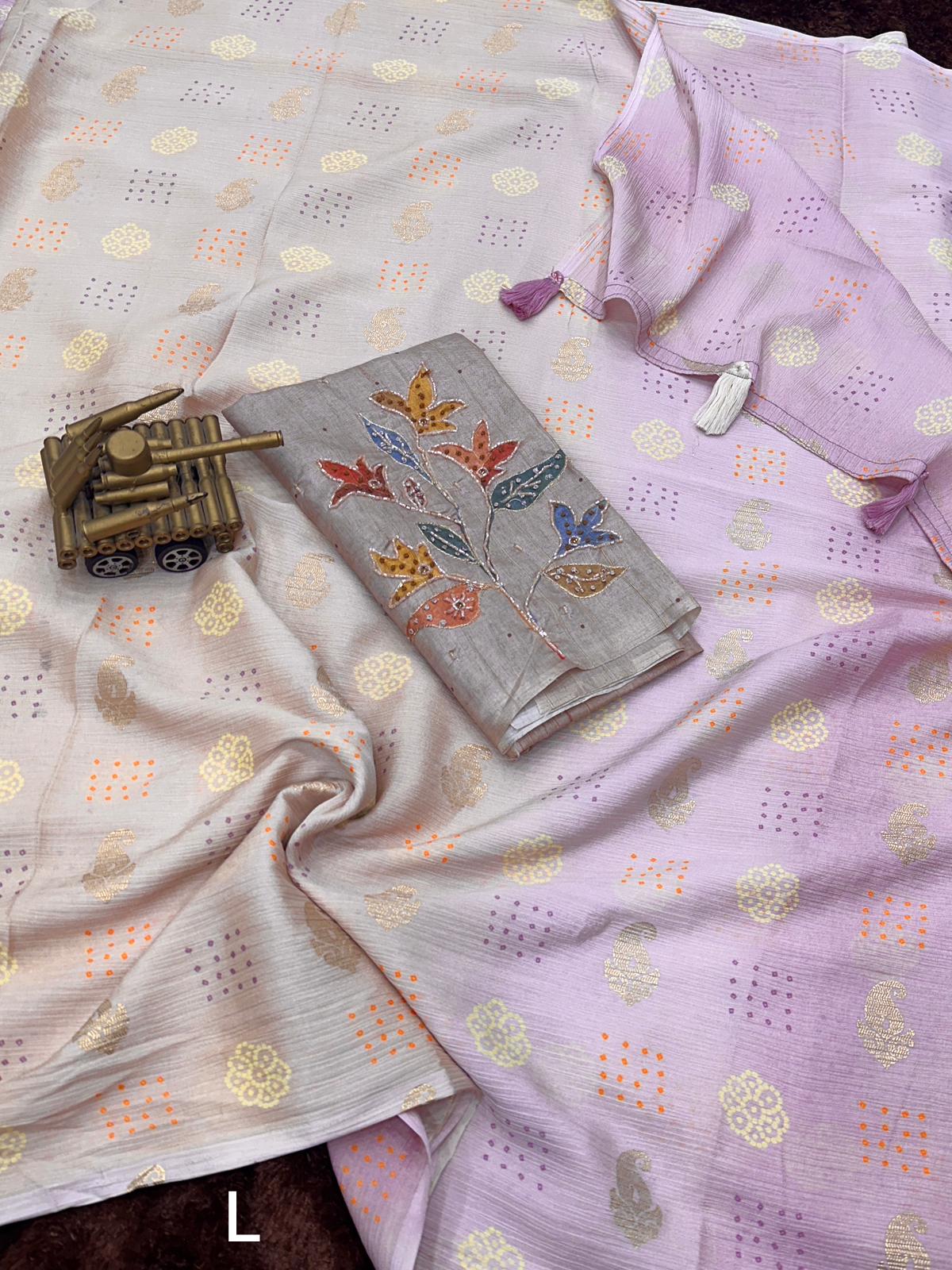 Women's Designer Indian Style Saanjh Chinnon Silk 3d Printed Saree