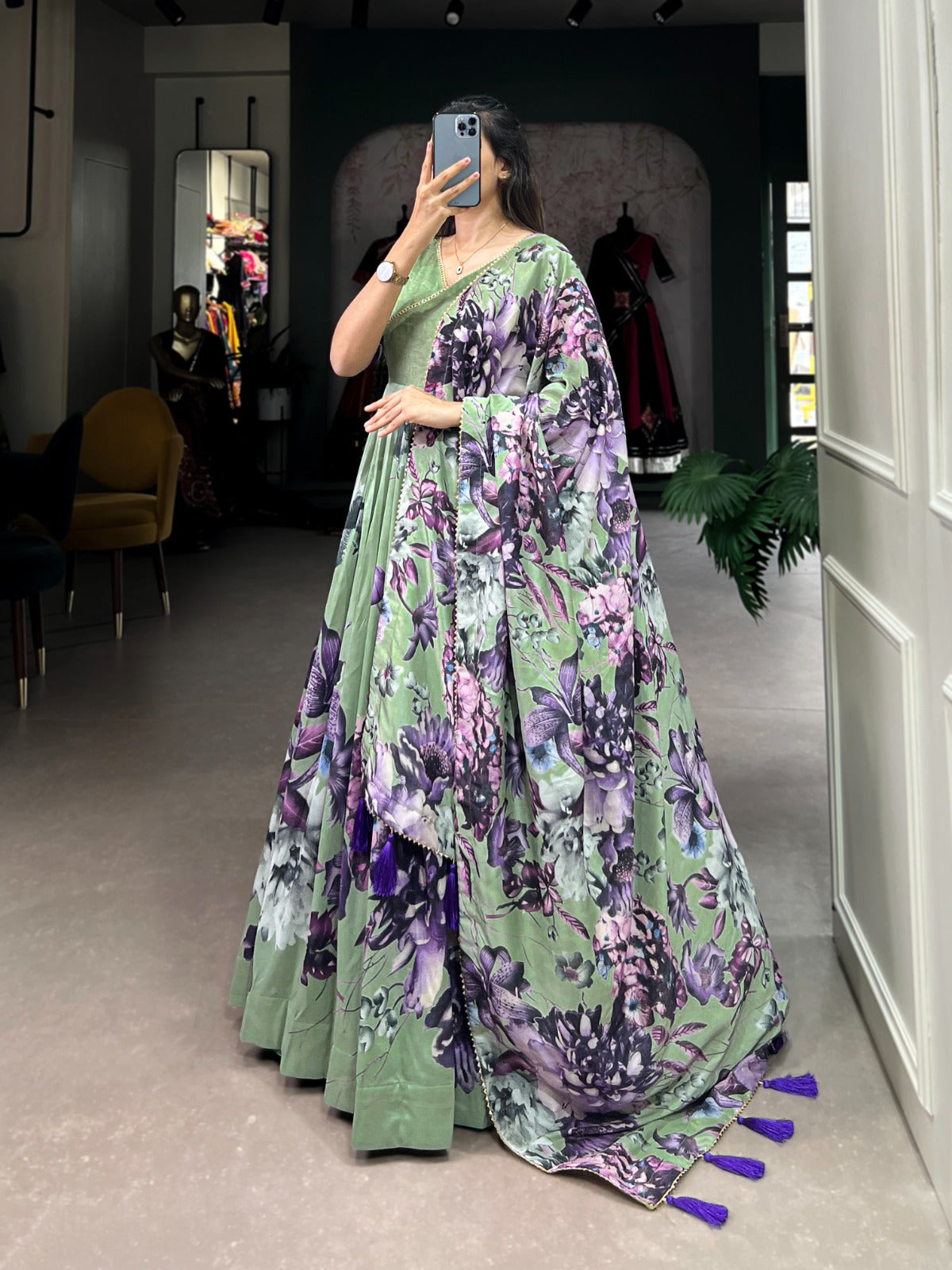 Women's Designer Party Wear Tussar Silk Printed Gown With Dupatta loading