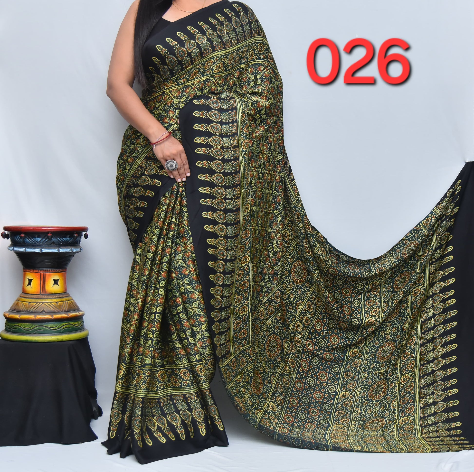Women's Designer Party Wear Aajrkh Modal Silk Vegetable Hand Block Printed Saree