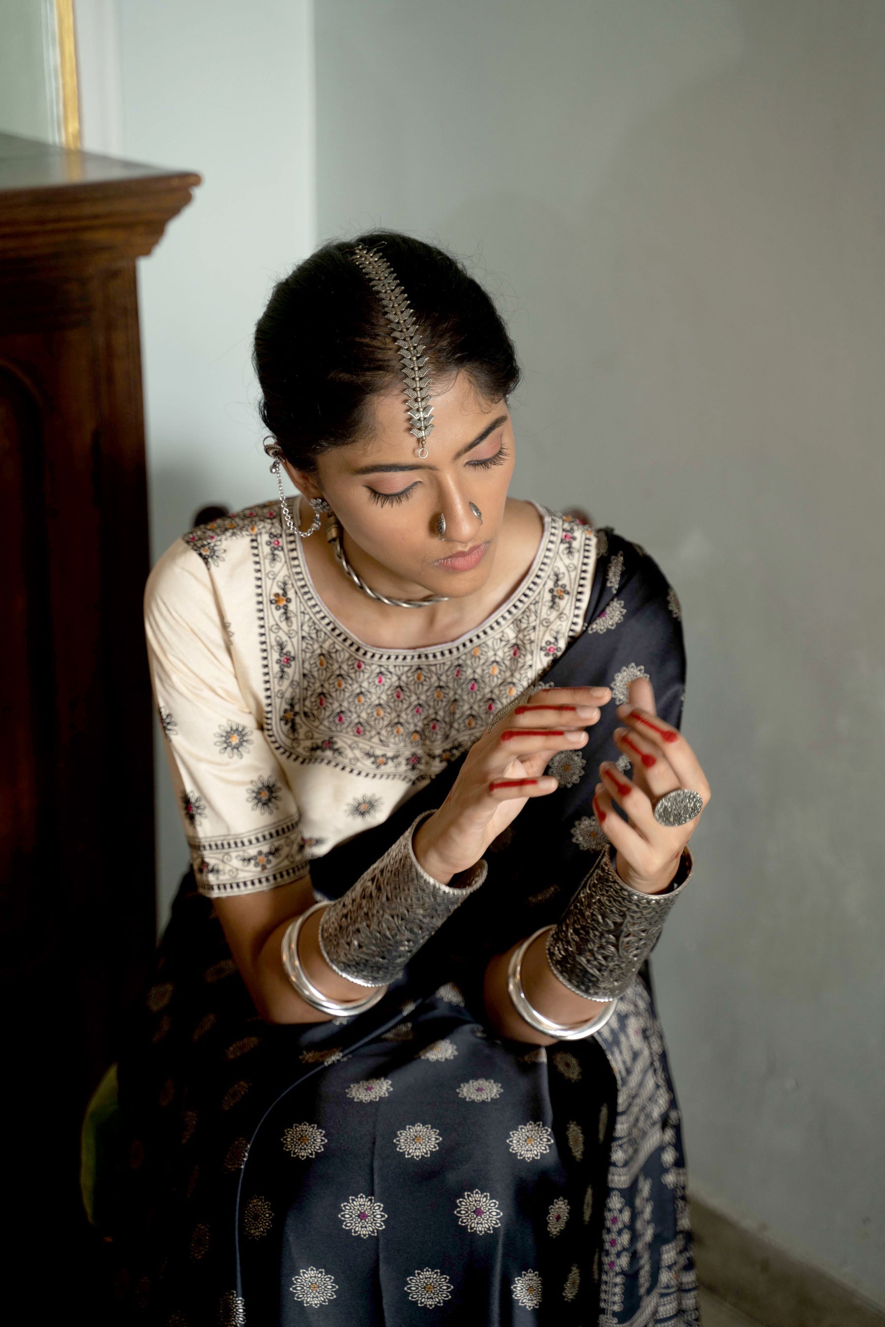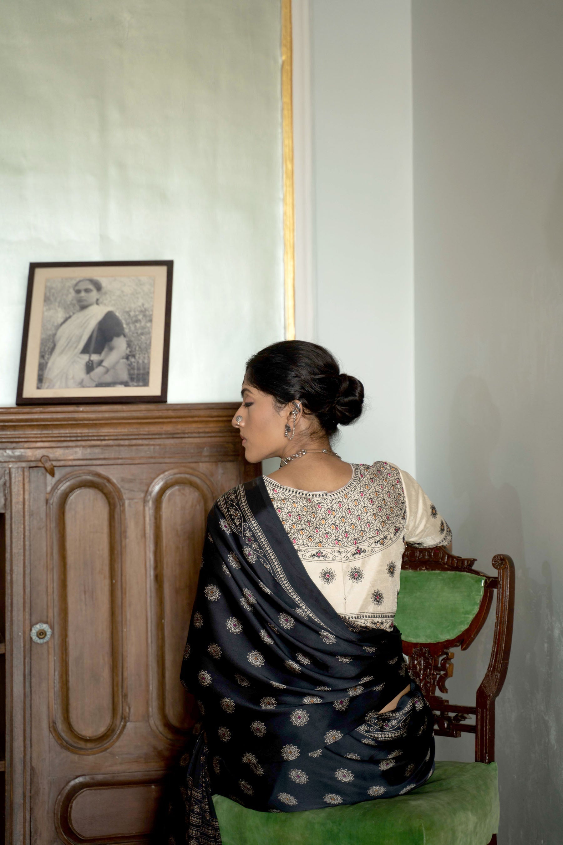 Women's Designer Party Wear Modal Gajji Silk with Ajrakh Print Saree