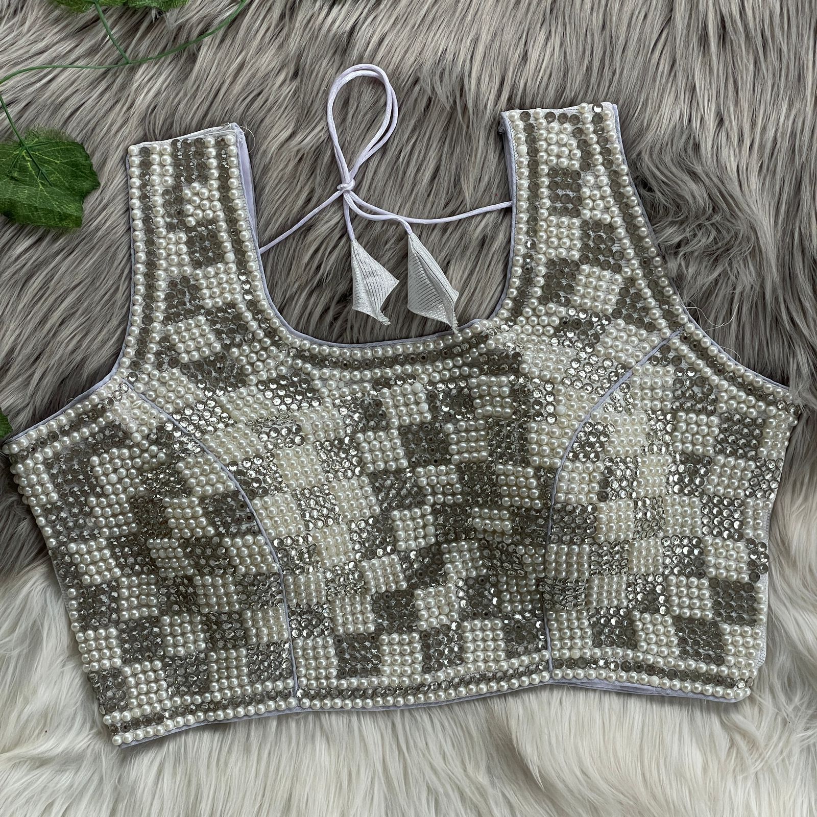 Women's Designer Party Wear Pearl Real Moti Crystal Sabyasachi Blouse