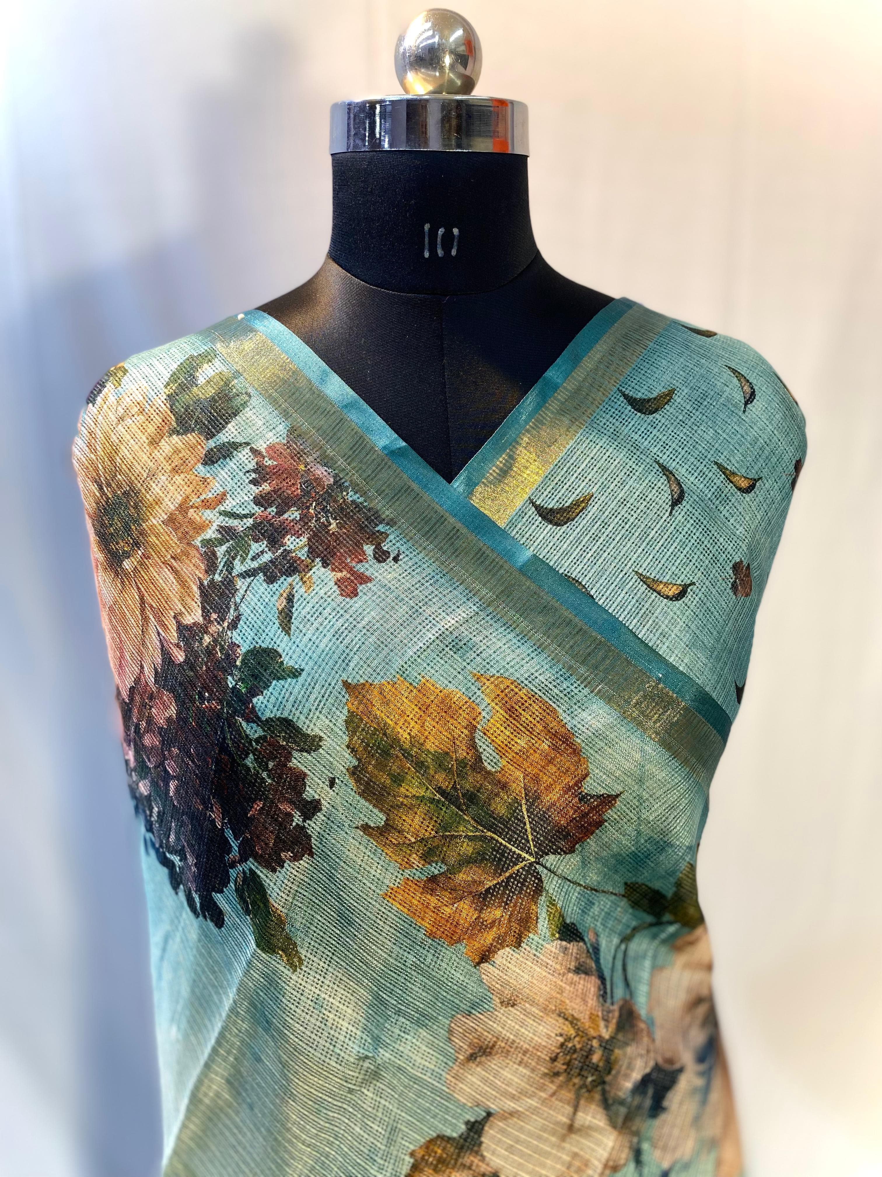 Pure Magicgold Organza Sarees With All over Digital Print And Viscose - Sequins Embroidery On The Saree With Rich Embroidered Pallu.