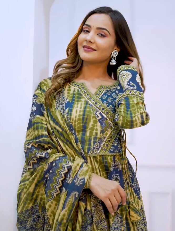 Women's Designer Party Wear Anarkali Pure Premium Cotton Hand Khatli Work Salwar Suite