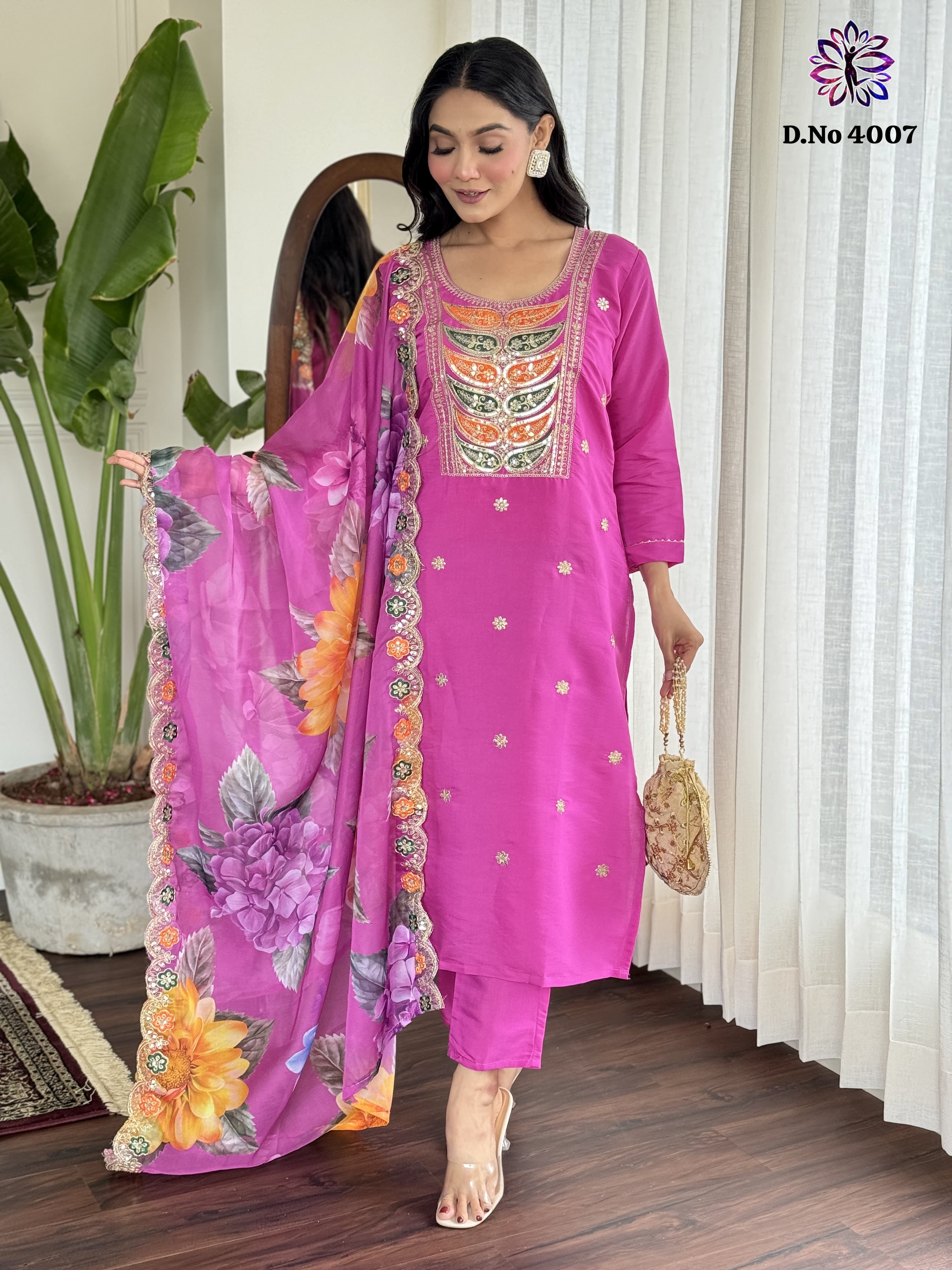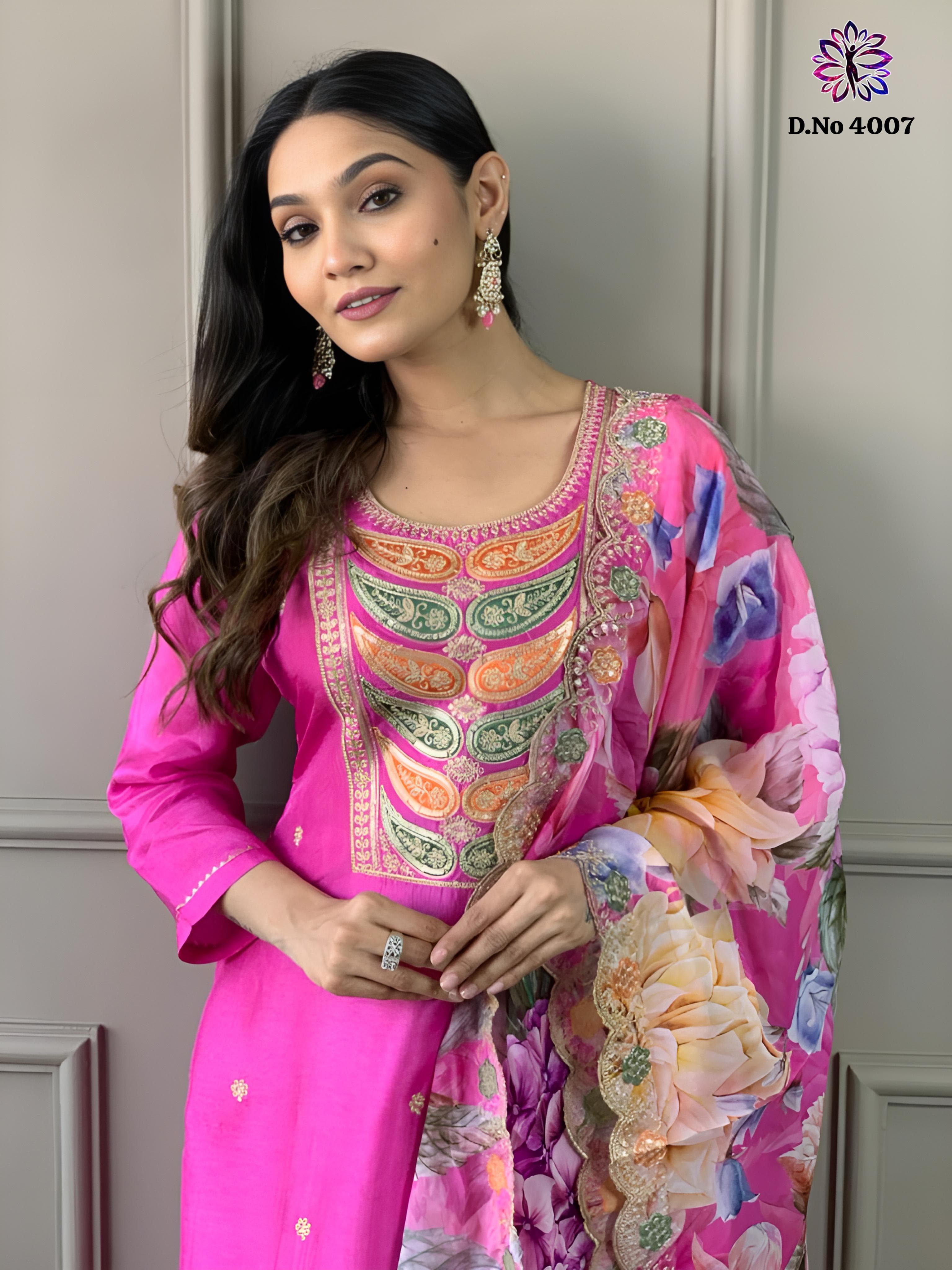 Women's Designer Party Wear Pure Soft Viscose Chanderi Kurti Pent Set with Dupatta