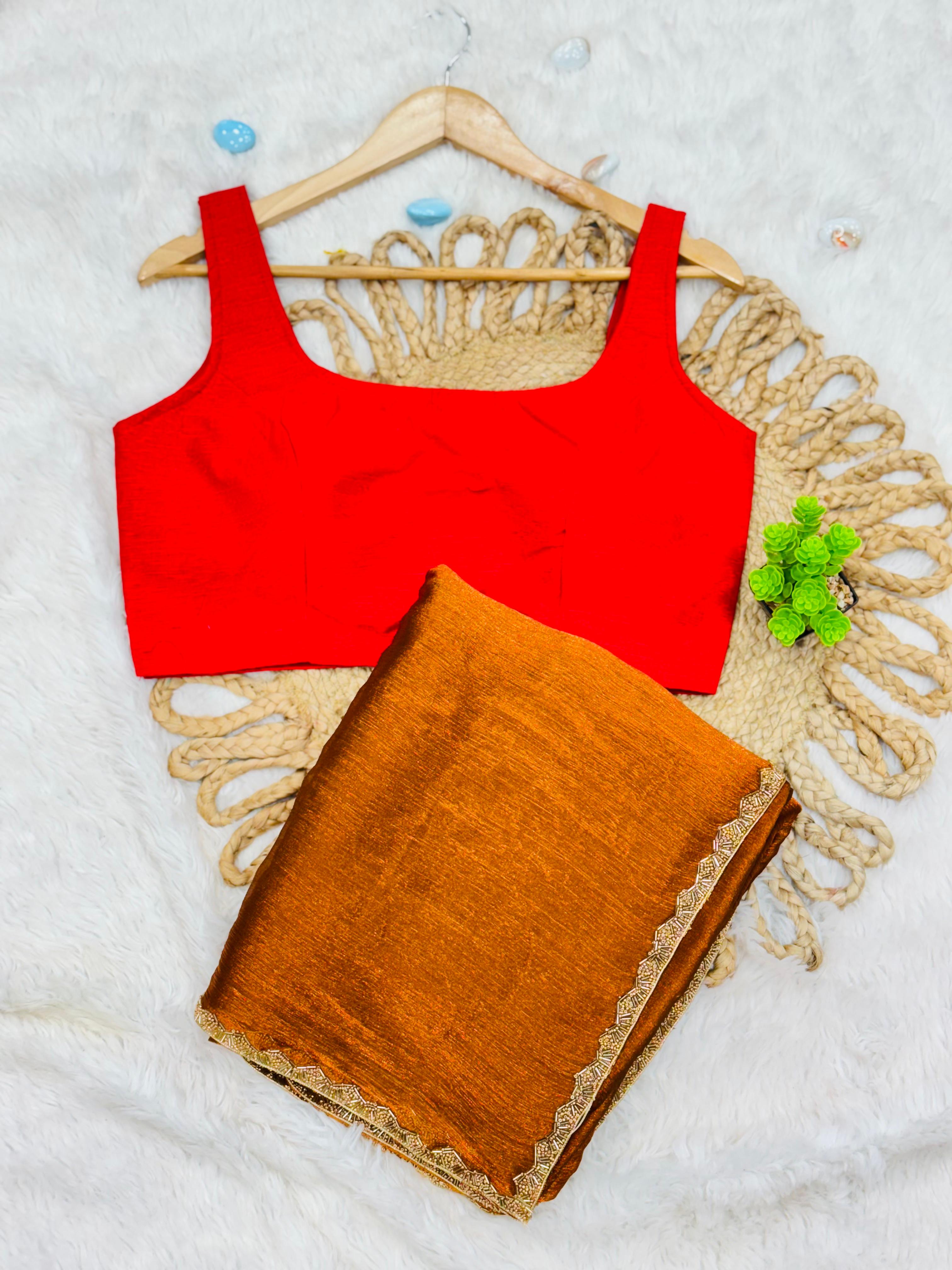 Women's Designer Party Wear Rich Golden Tissue Simmri Chiffon Saree